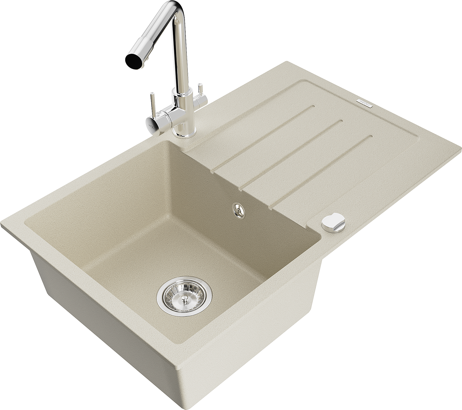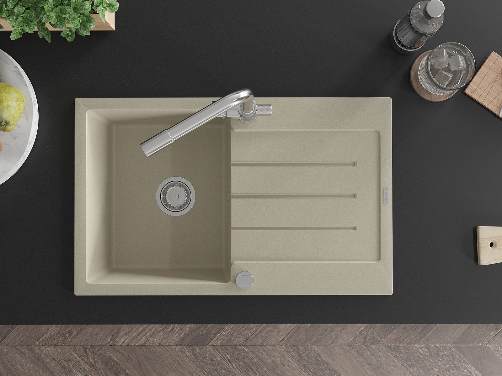 Mexen Bruno zlewozmywak granitowy 1-komorowy z ociekaczem i baterią kuchenną Duero, beżowy - 6513-69-671600-00