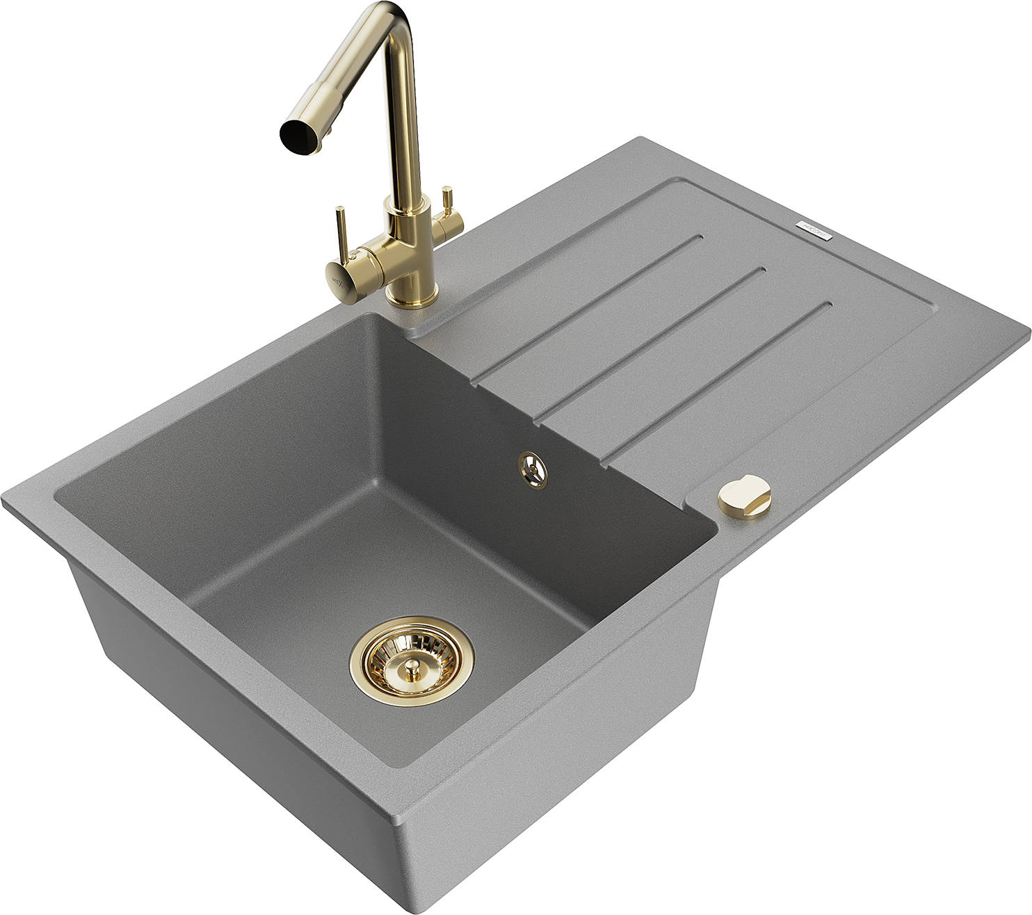 Mexen Bruno zlewozmywak granitowy 1-komorowy z ociekaczem i baterią kuchenną Duero, szary - 6513-71-671600-50
