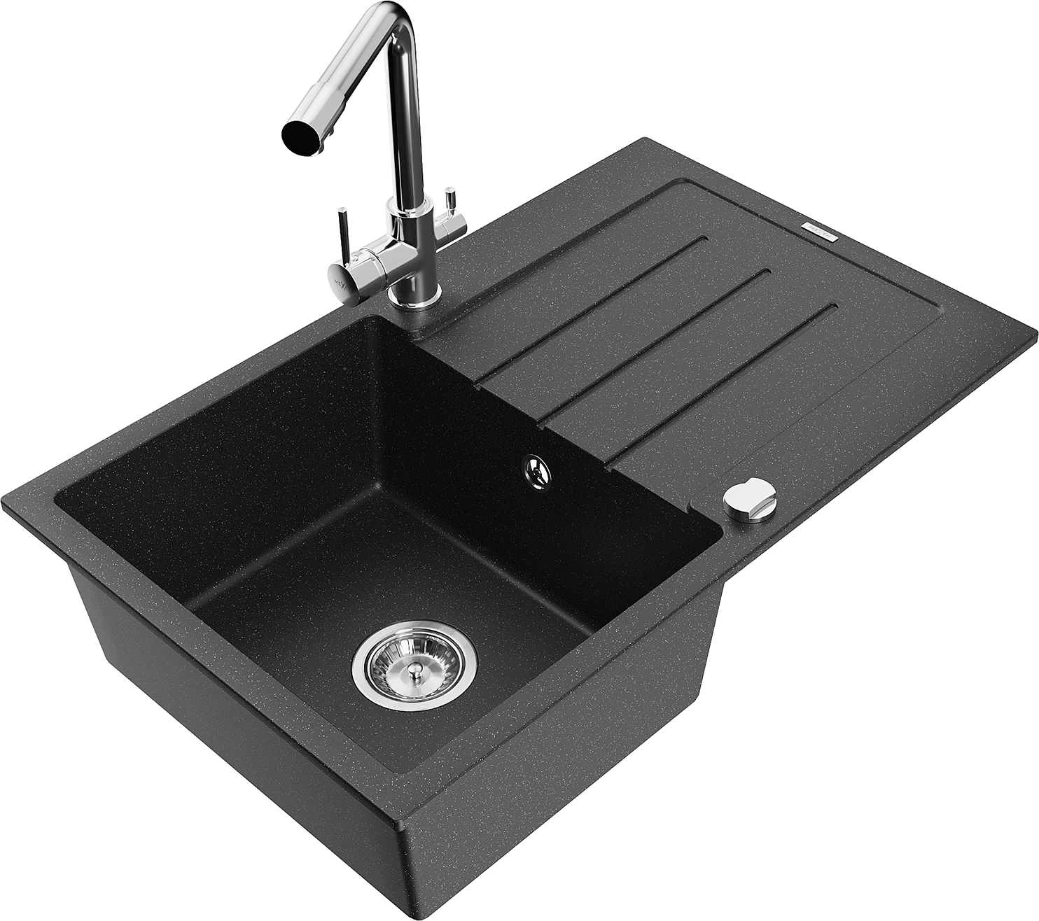 Mexen Bruno zlewozmywak granitowy 1-komorowy z ociekaczem i baterią kuchenną Duero, czarny/srebrny metalik - 6513-73-671600-00