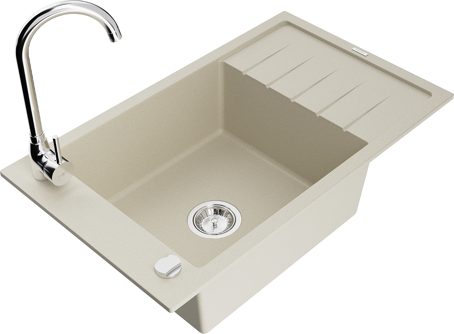 Mexen Elias zlewozmywak granitowy 1-komorowy z ociekaczem i baterią kuchenną Telma, beżowy - 6511-69-670200-00