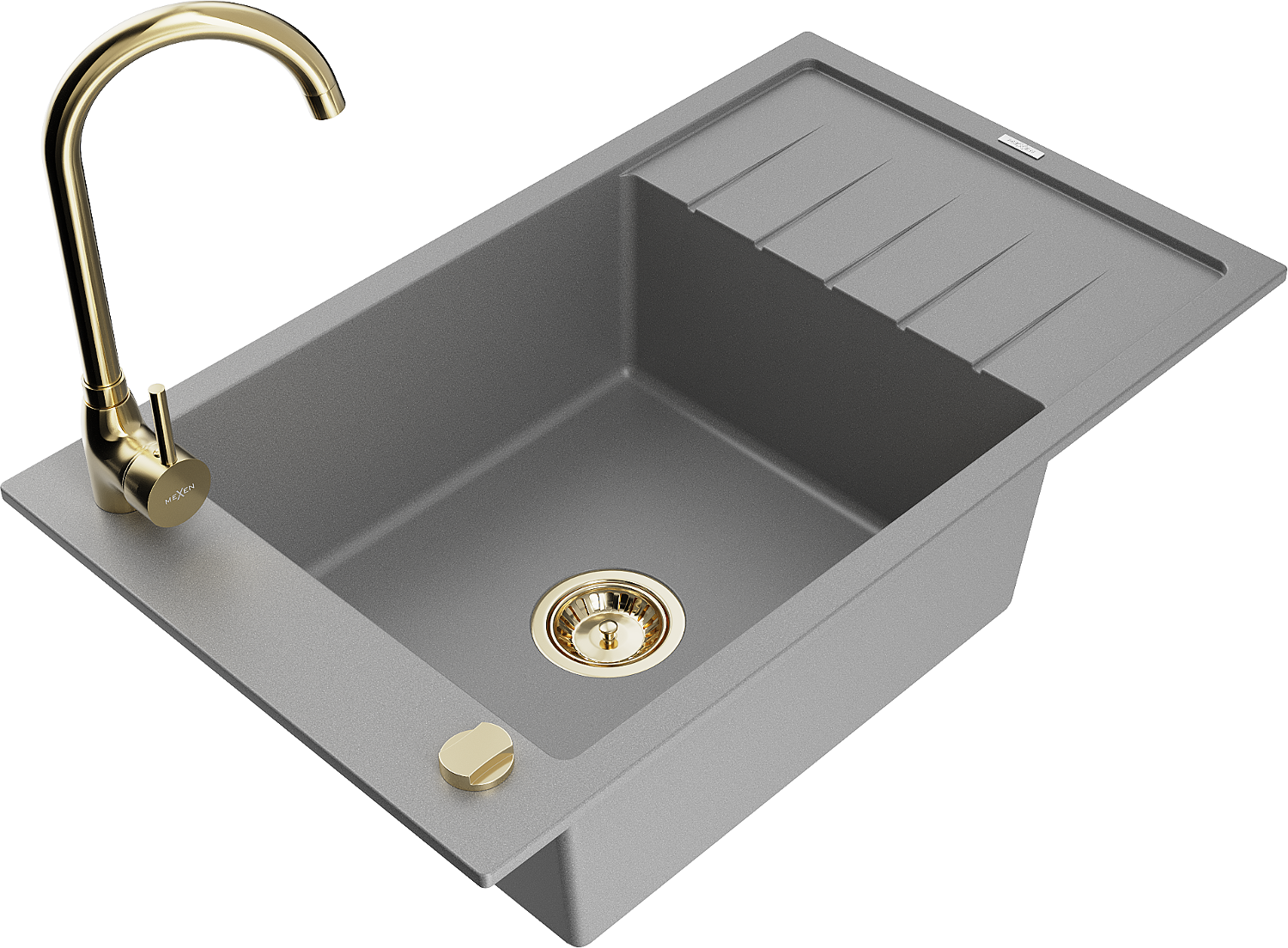 Mexen Elias zlewozmywak granitowy 1-komorowy z ociekaczem i baterią kuchenną Telma, szary - 6511-71-670200-50