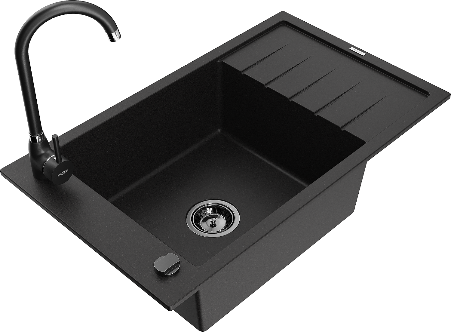 Mexen Elias zlewozmywak granitowy 1-komorowy z ociekaczem i baterią kuchenną Telma, czarny - 6511-77-670200-70-B