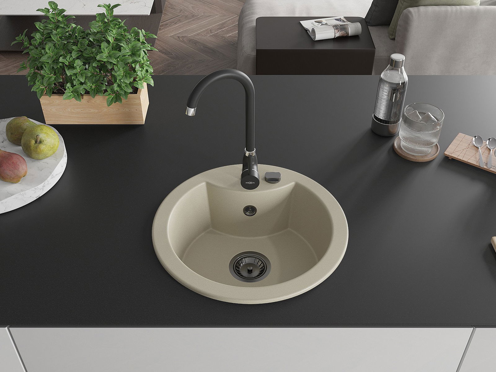 Mexen Diego zlewozmywak granitowy 1-komorowy z baterią kuchenną Telma, beżowy - 6512-69-670200-70