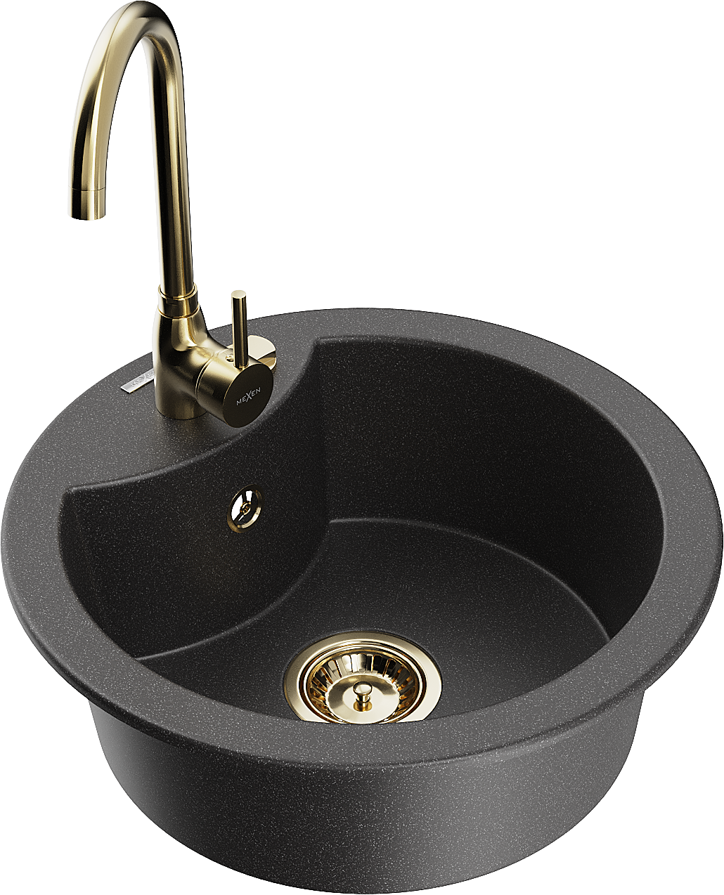 Mexen Diego zlewozmywak granitowy 1-komorowy z baterią kuchenną Telma, czarny nakrapiany - 6512-76-670200-50
