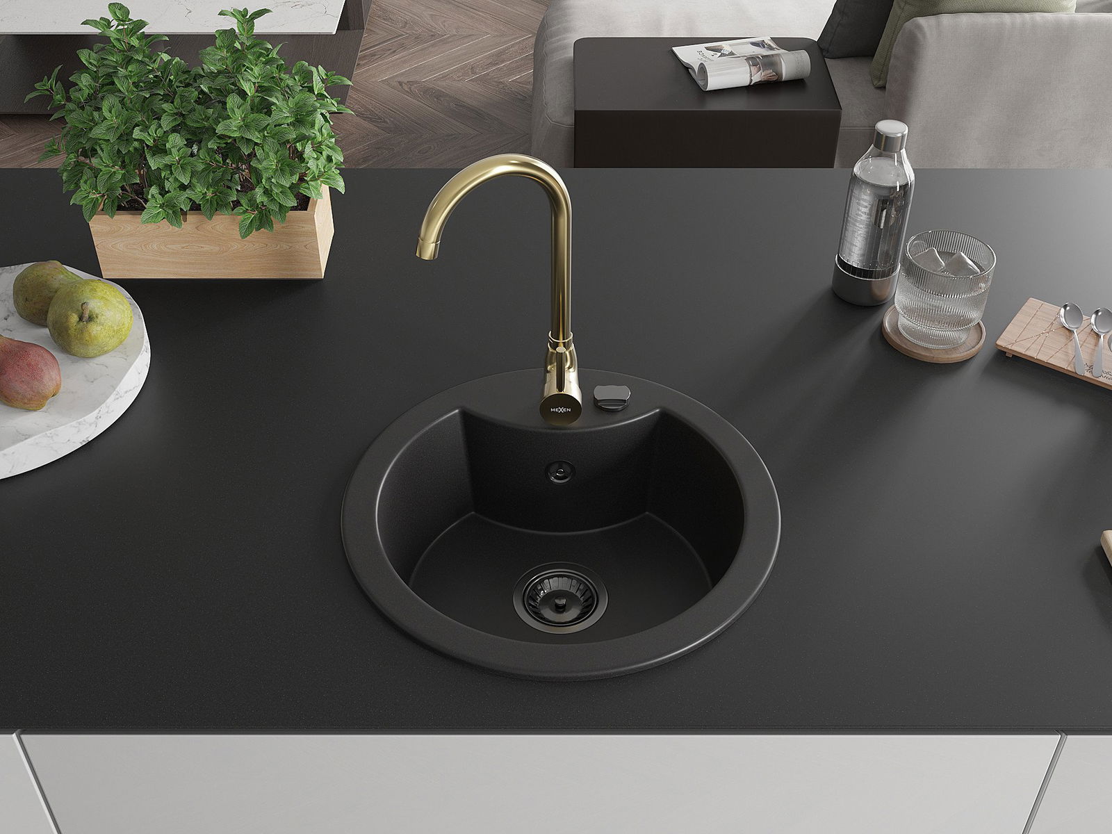 Mexen Diego zlewozmywak granitowy 1-komorowy z baterią kuchenną Telma, czarny - 6512-77-670200-50-B