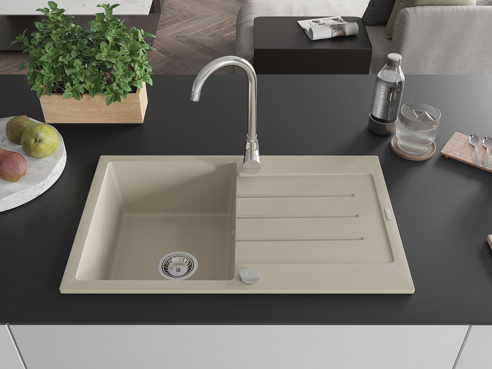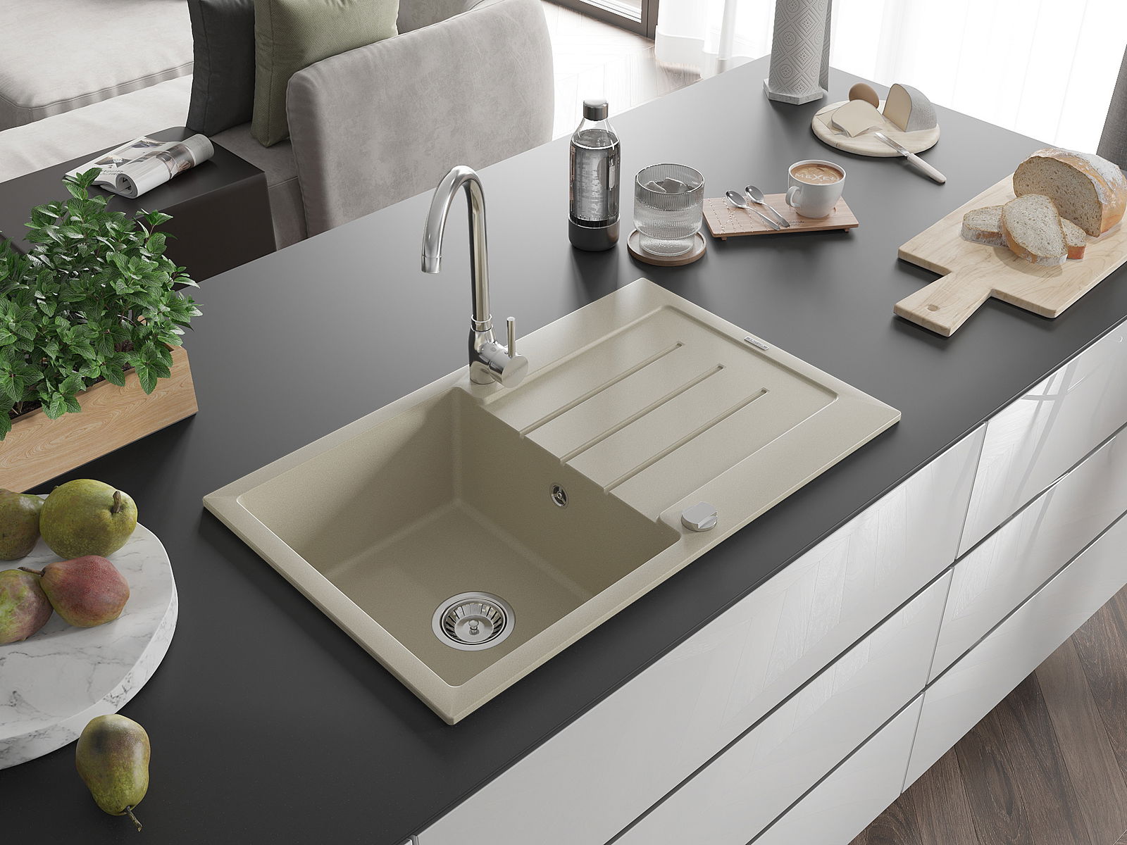 Zlewozmywak został wykonany z wysokiej jakości granitu. Stanowi eleganckie, a przede wszystkim praktyczne uzupełnienie każdej kuchni, niezależnie od jej stylu. Wysoka jakość oraz trwałość granitu zapewniają wieloletnie użytkowanie.