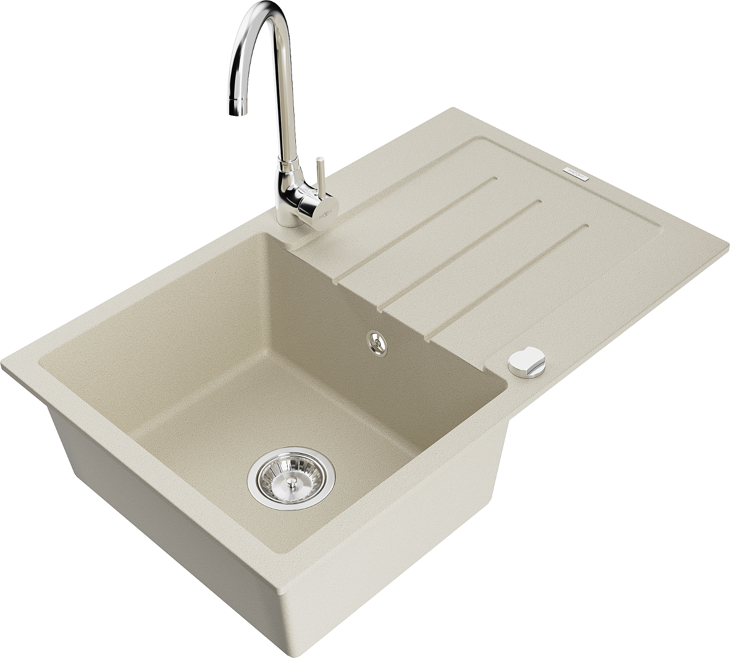 Mexen Bruno zlewozmywak granitowy 1-komorowy z ociekaczem i baterią kuchenną Telma, beżowy - 6513-69-670200-00