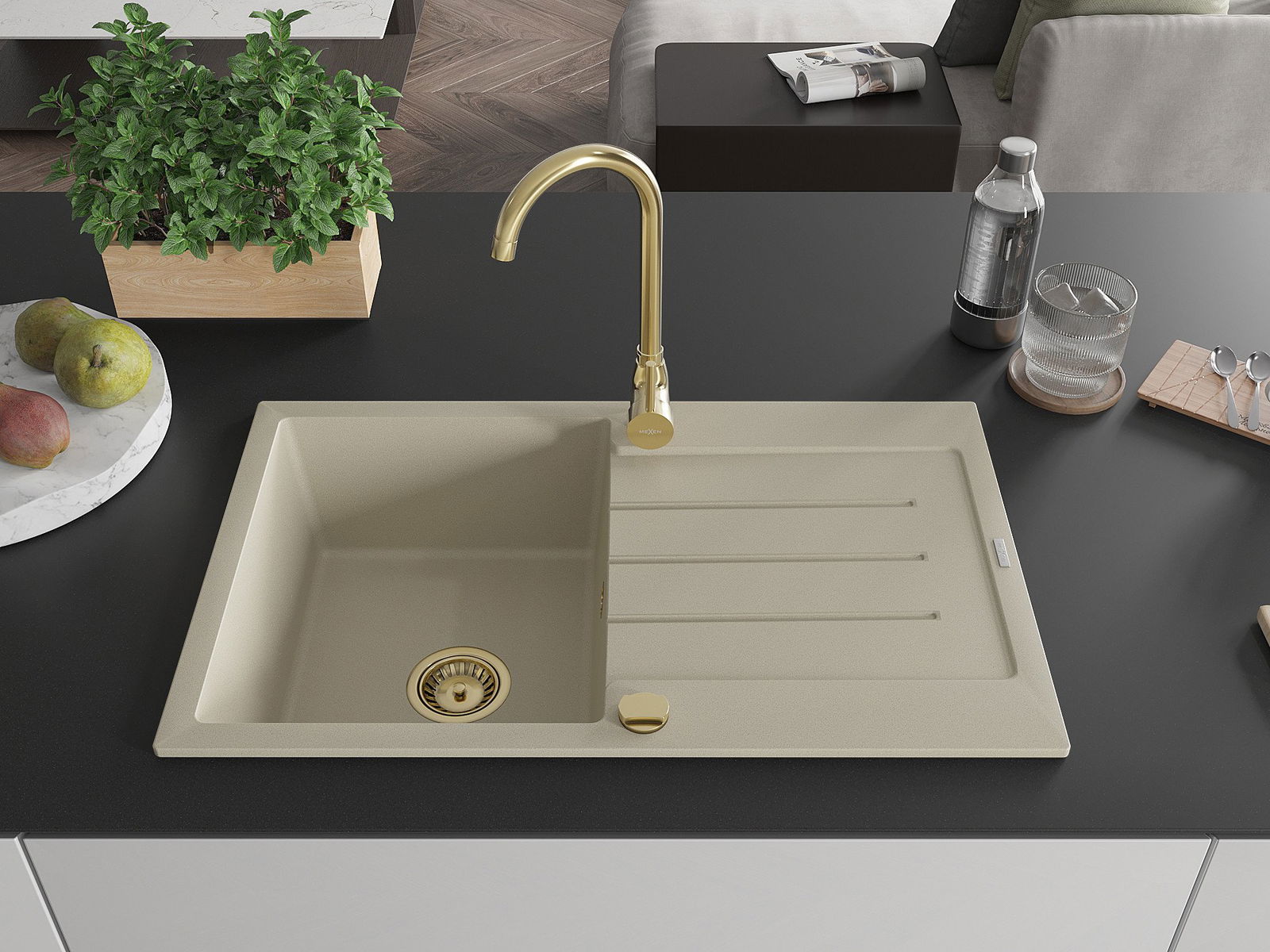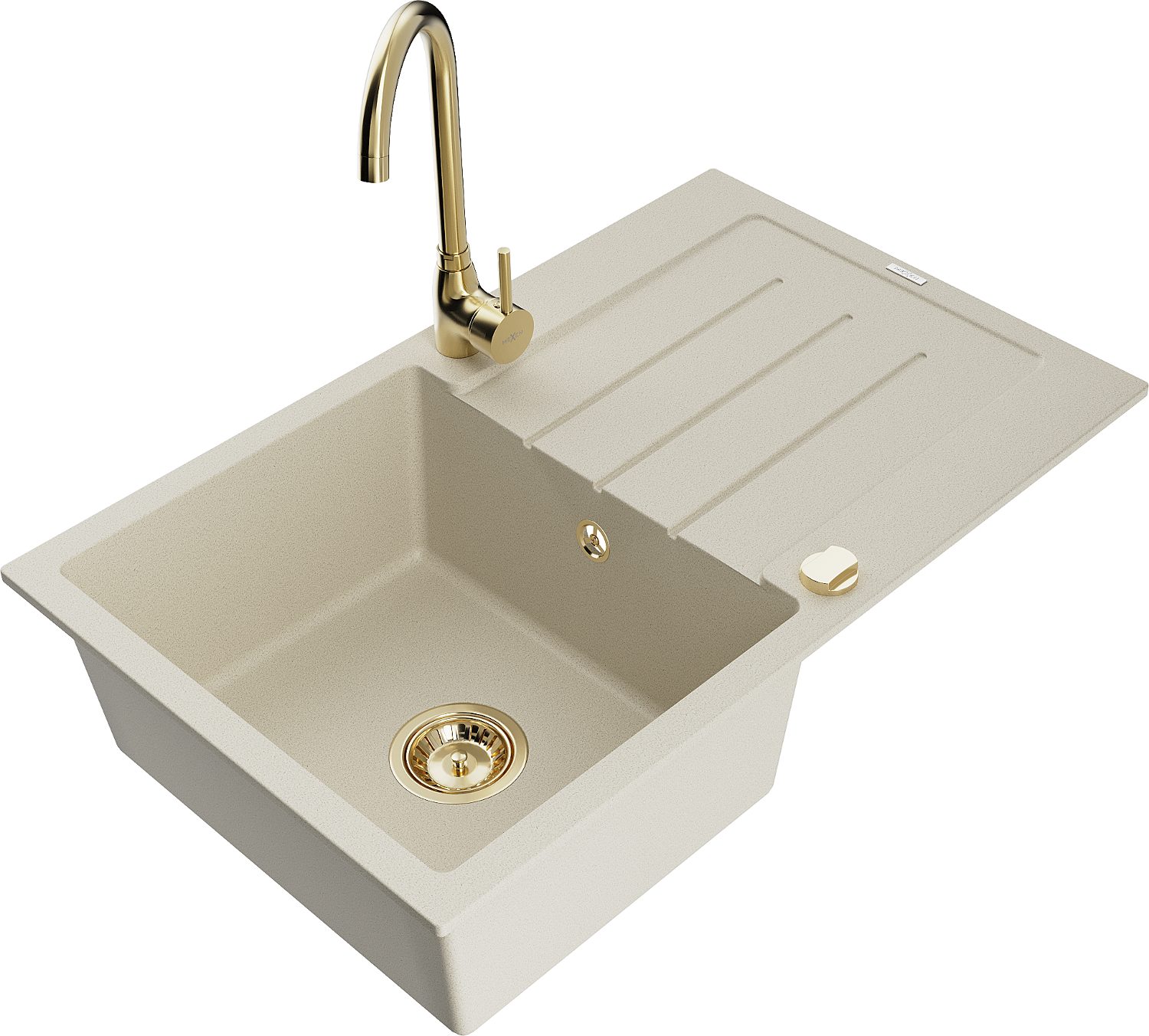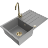 Mexen Bruno zlewozmywak granitowy 1-komorowy z ociekaczem i baterią kuchenną Telma, beżowy - 6513-69-670200-50