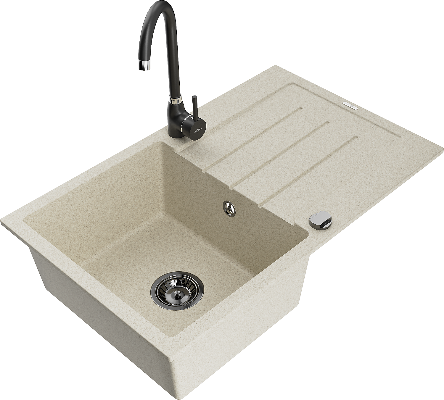 Mexen Bruno zlewozmywak granitowy 1-komorowy z ociekaczem i baterią kuchenną Telma, beżowy - 6513-69-670200-70