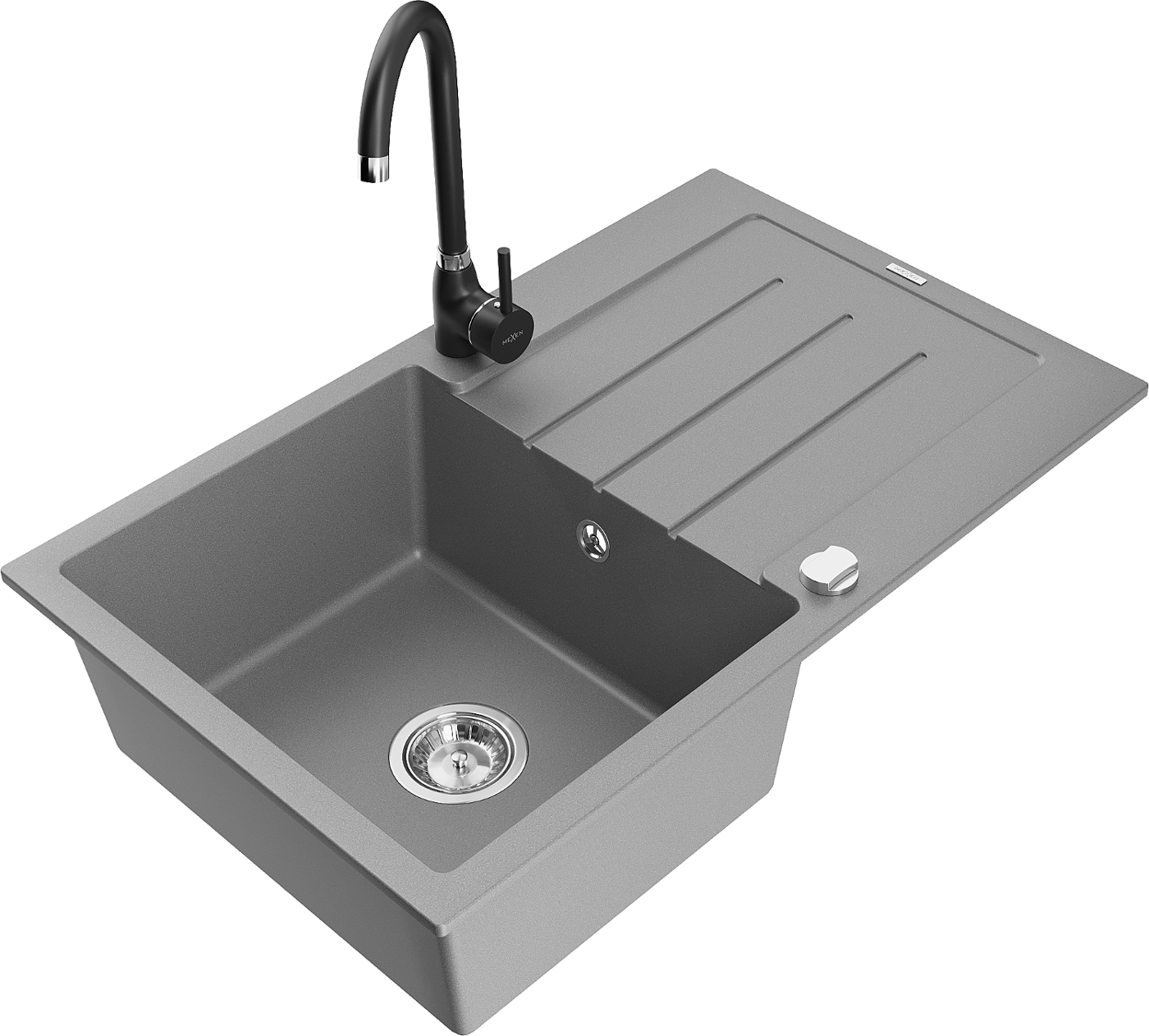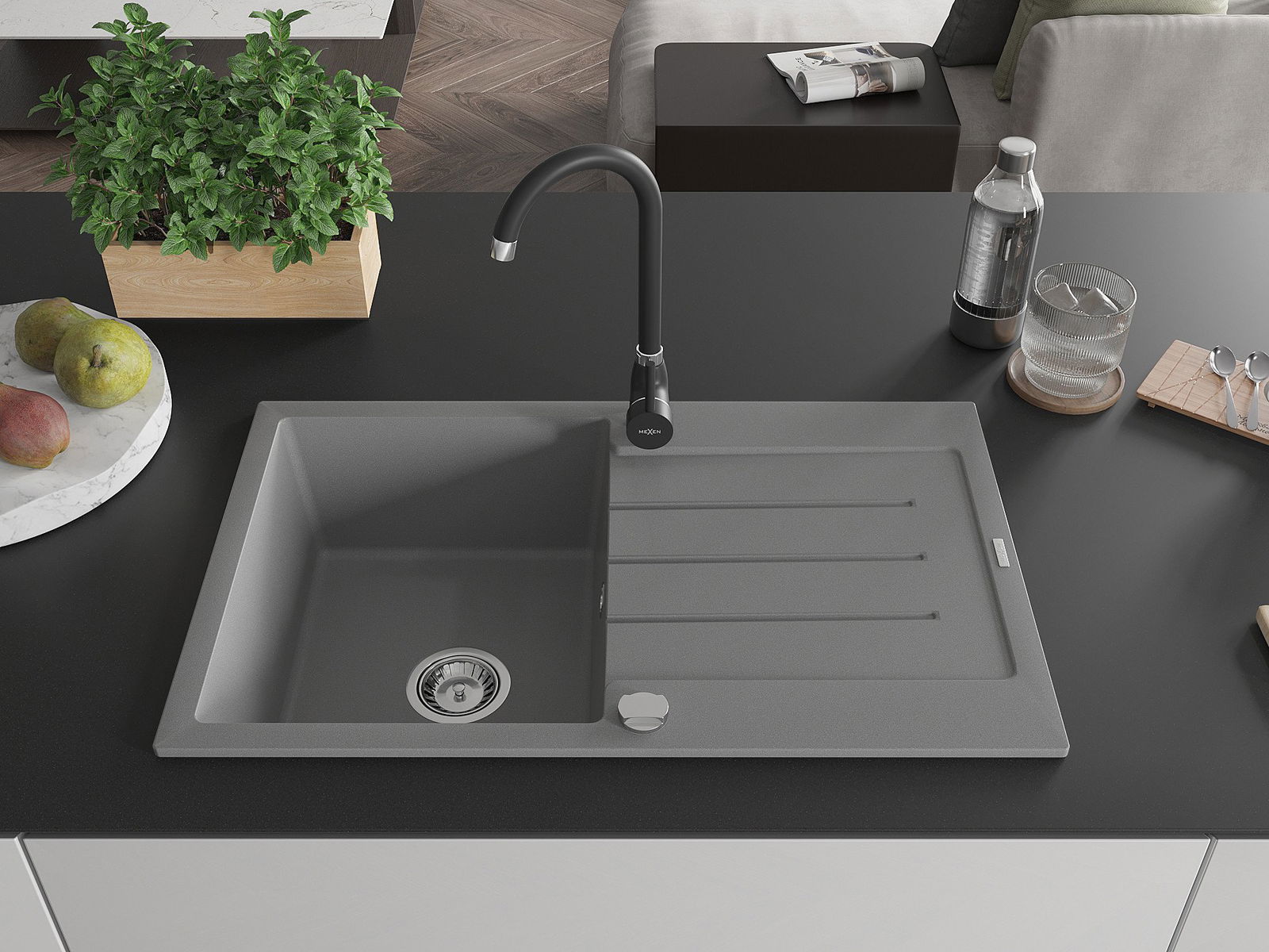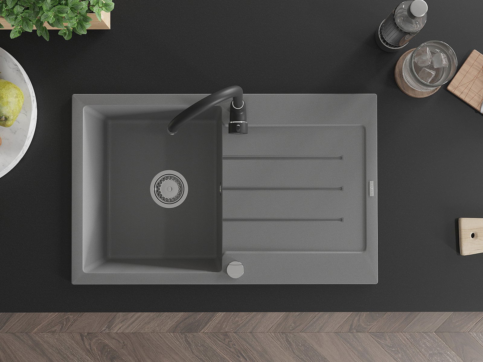 Mexen Bruno zlewozmywak granitowy 1-komorowy z ociekaczem i baterią kuchenną Telma, szary - 6513-71-670200-70