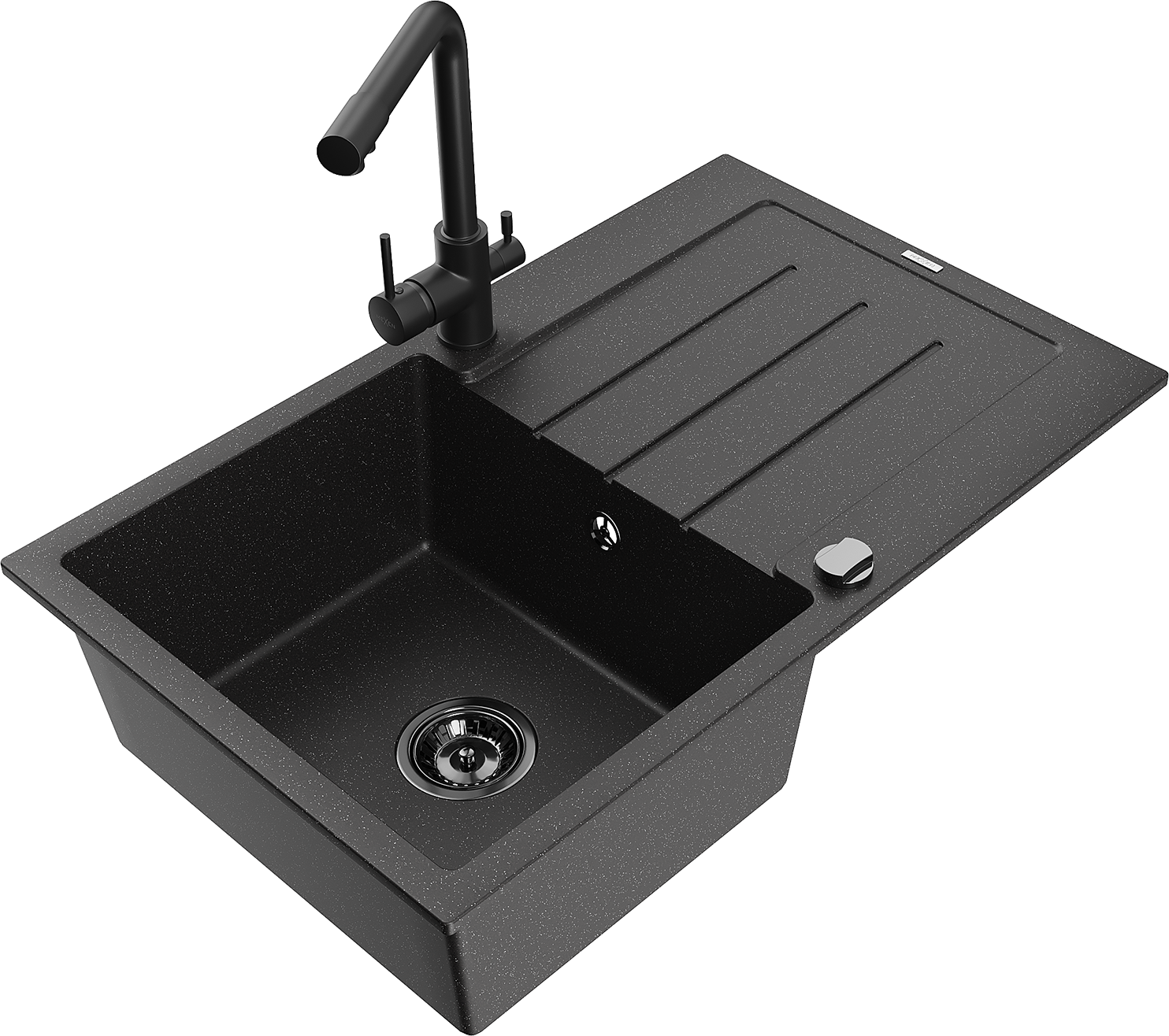 Mexen Bruno zlewozmywak granitowy 1-komorowy z ociekaczem i baterią kuchenną Duero, czarny/srebrny metalik - 6513-73-671600-70-B