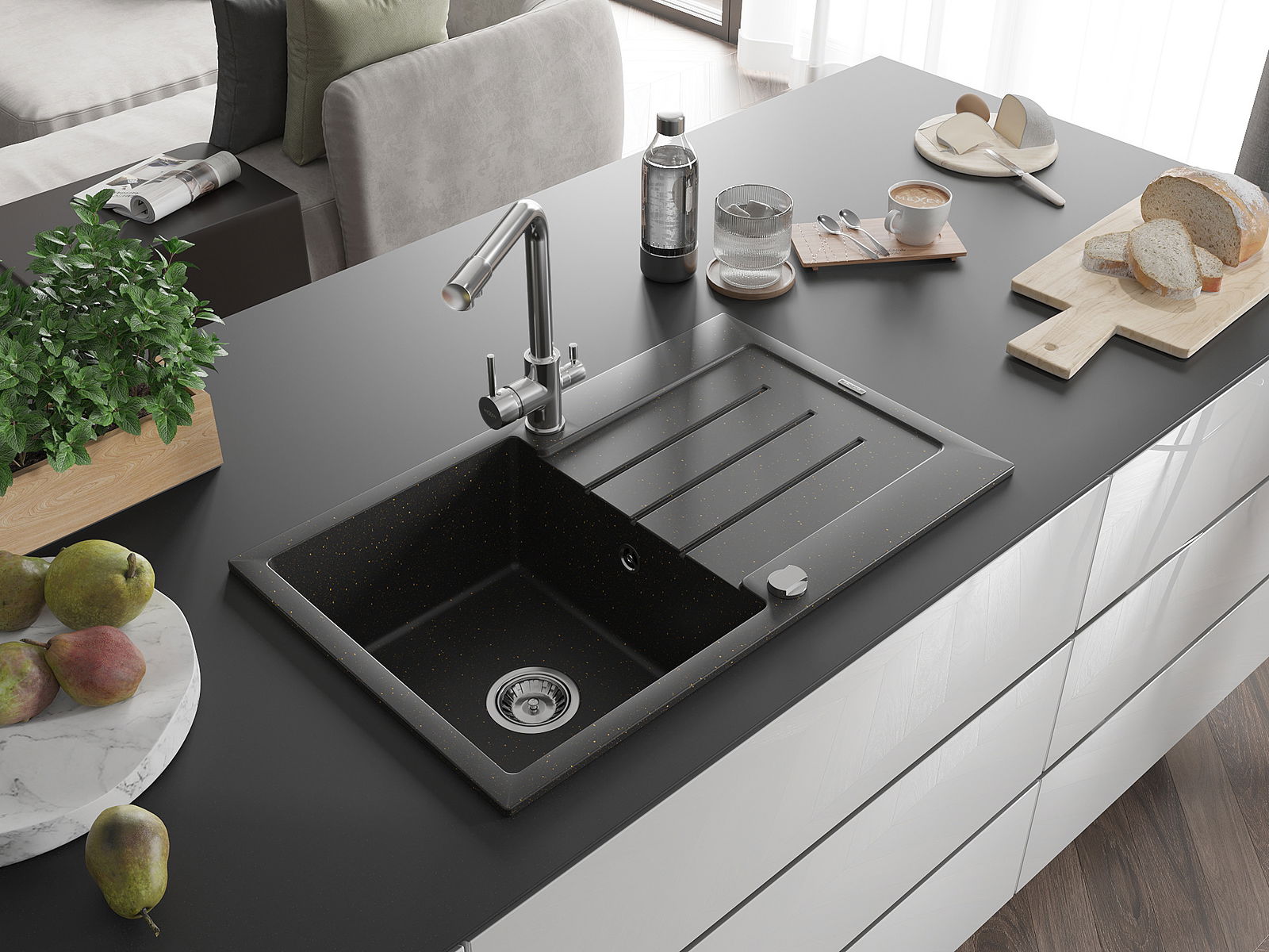 Zlewozmywak został wykonany z wysokiej jakości granitu. Stanowi eleganckie, a przede wszystkim praktyczne uzupełnienie każdej kuchni, niezależnie od jej stylu. Wysoka jakość oraz trwałość granitu zapewniają wieloletnie użytkowanie.