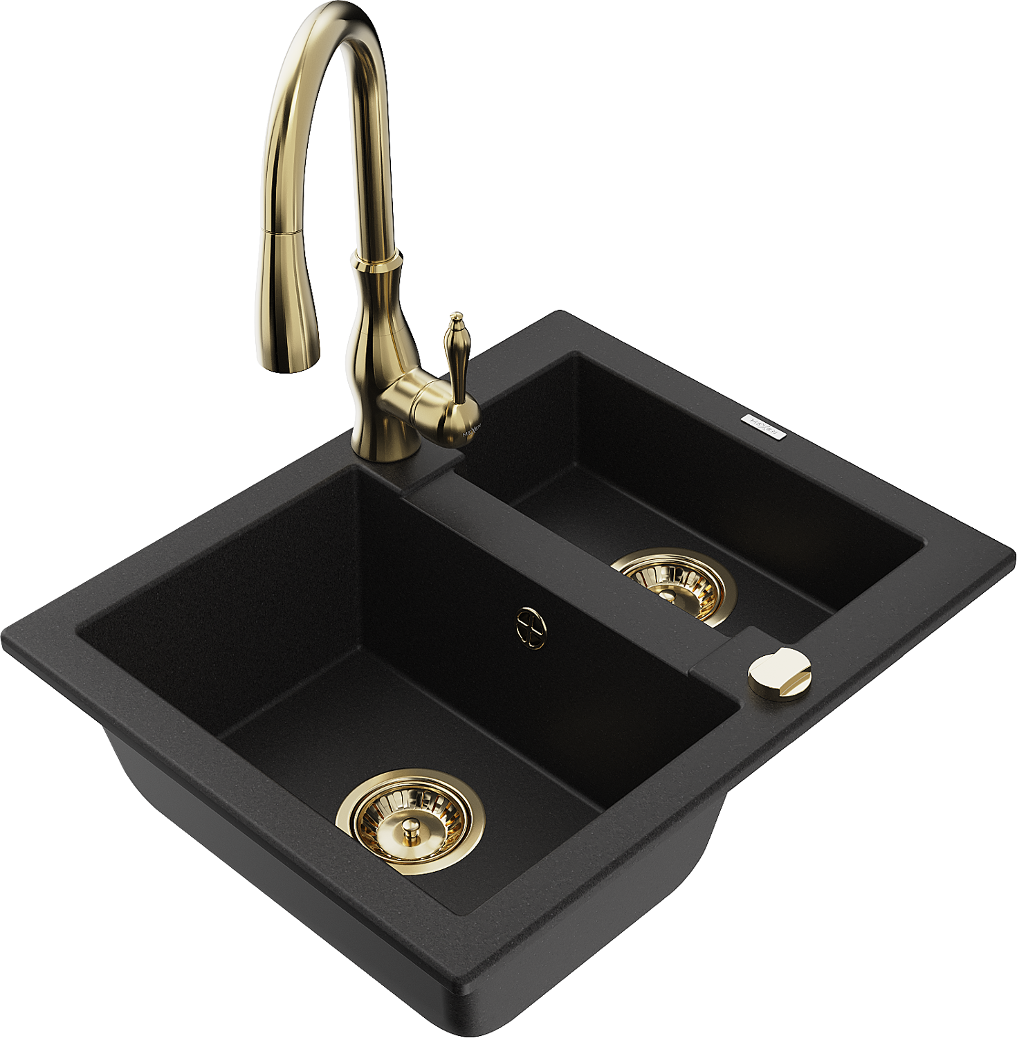 Mexen Carlos zlewozmywak granitowy 1,5-komorowy z baterią kuchenną Savita, czarny - 6518-77-672601-50