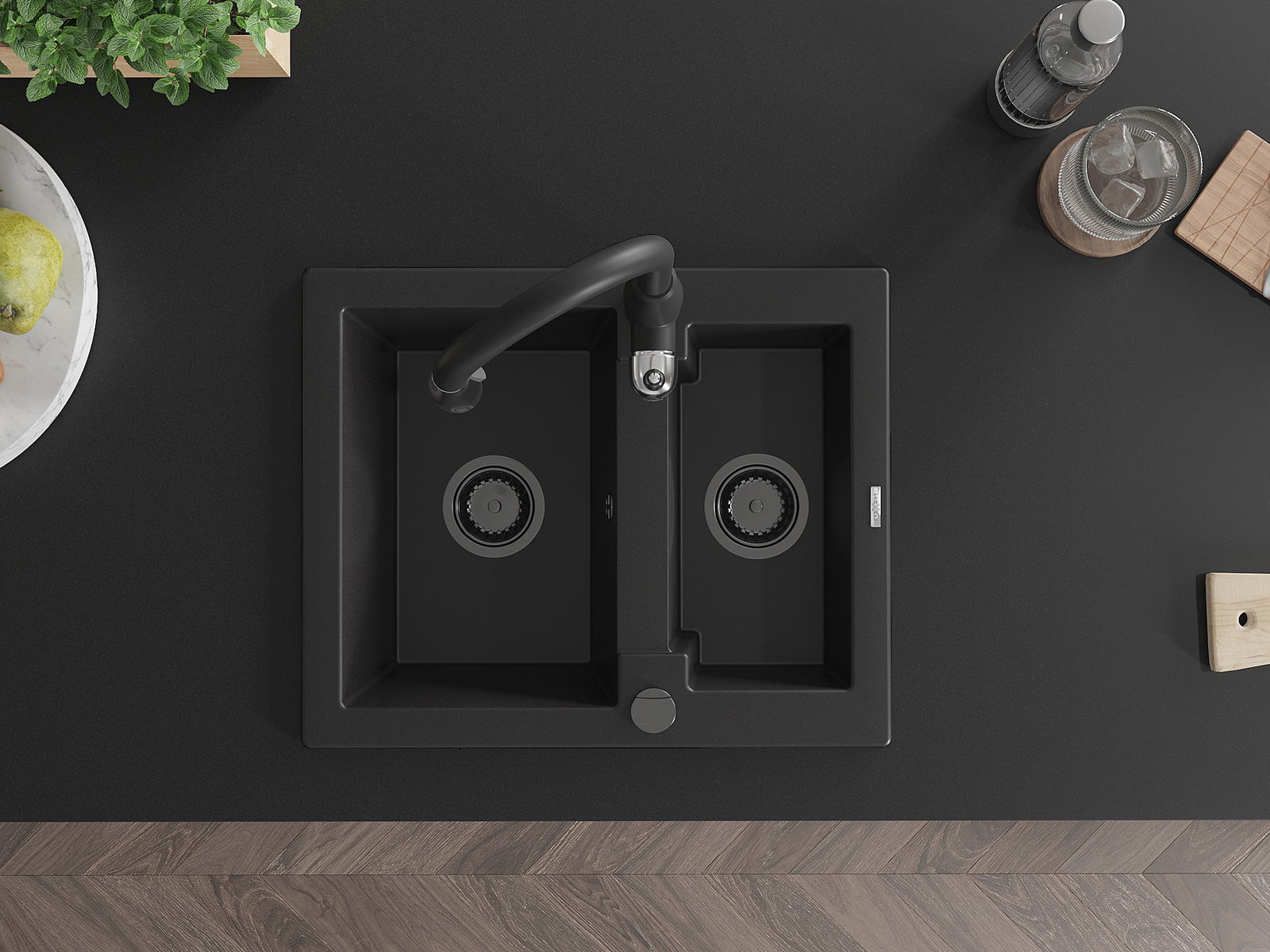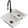 Mexen Carlos zlewozmywak granitowy 1,5-komorowy z baterią kuchenną Savita, czarny - 6518-77-672601-70-B