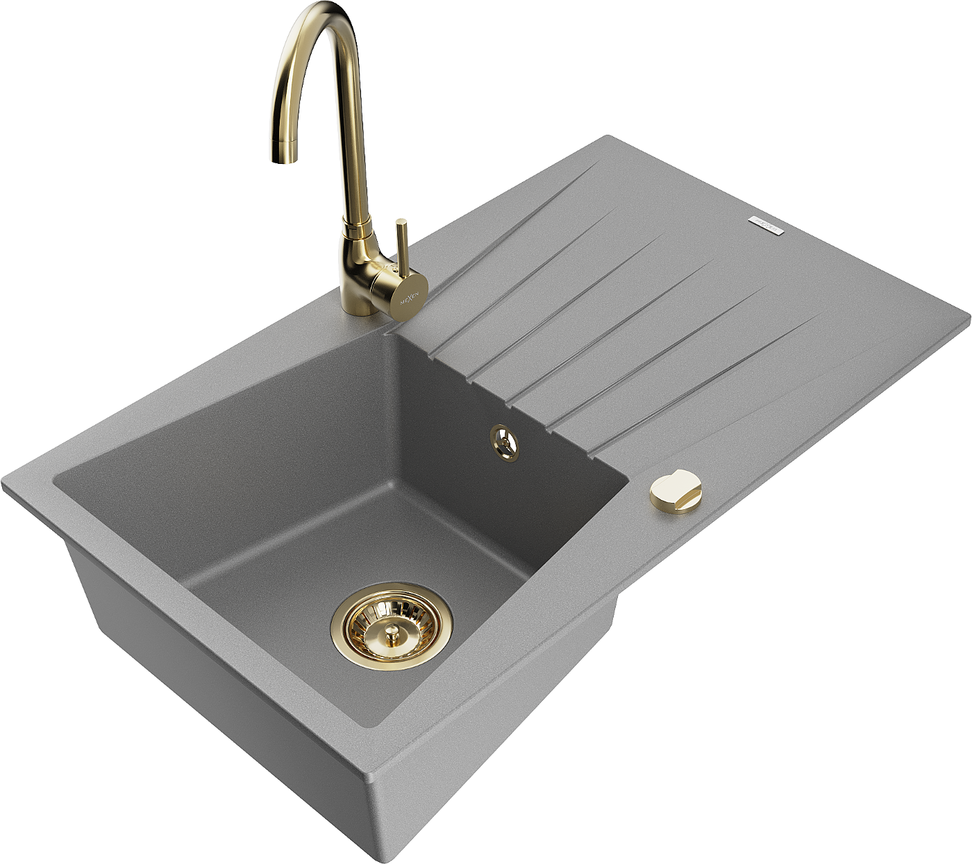 Mexen Cesar zlewozmywak granitowy 1-komorowy z ociekaczem i baterią kuchenną Telma, szary - 6514-71-670200-50