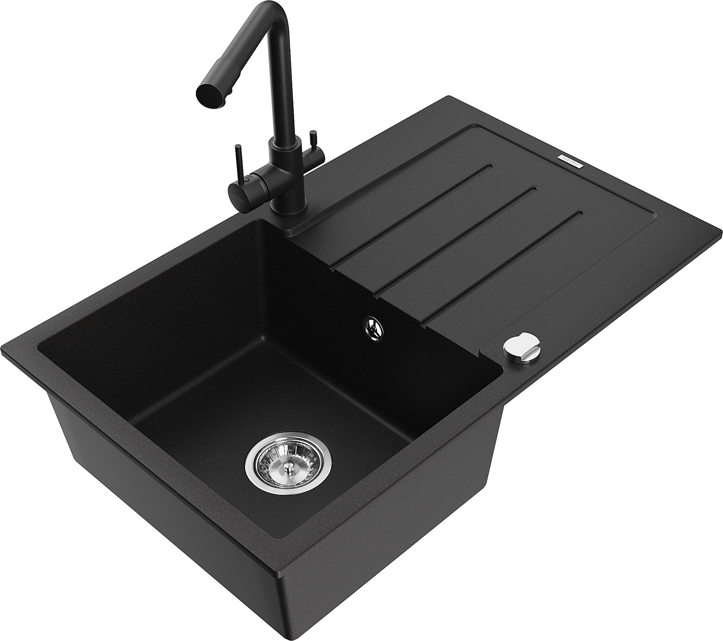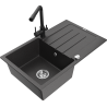 Mexen Bruno zlewozmywak granitowy 1-komorowy z ociekaczem i baterią kuchenną Duero, czarny - 6513-77-671600-70