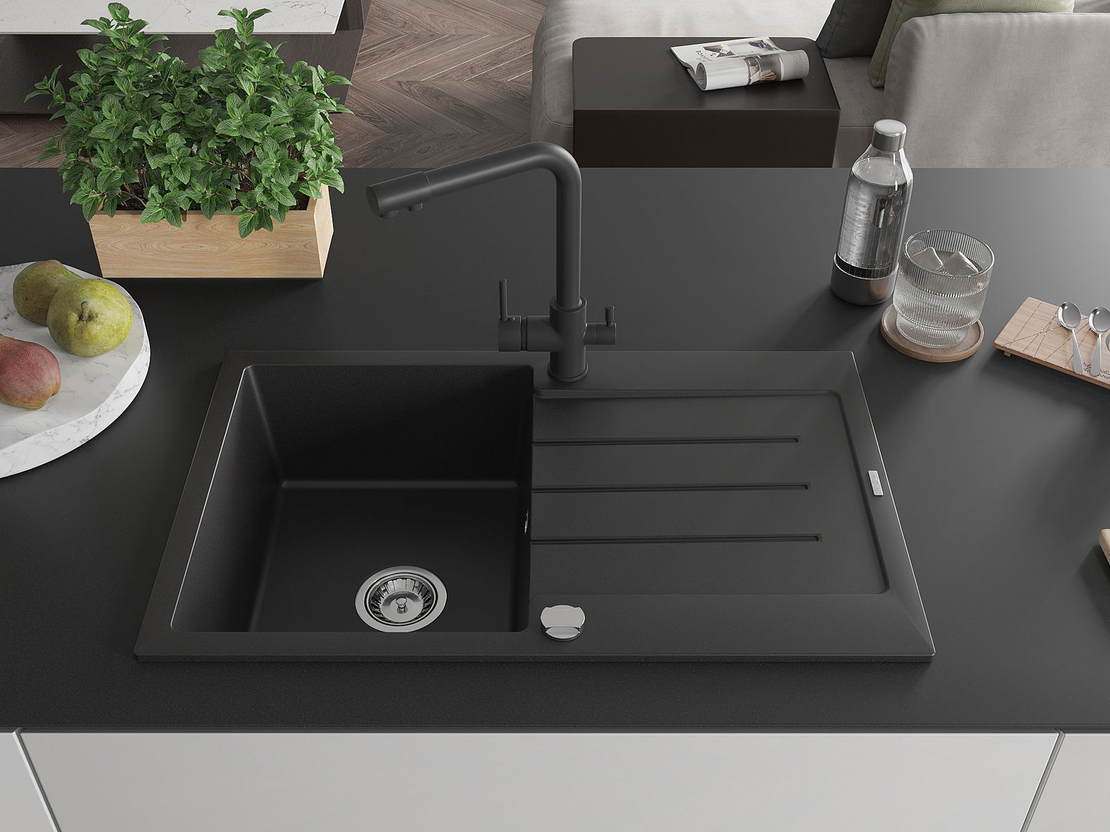 Zlewozmywak został wykonany z wysokiej jakości granitu. Stanowi eleganckie, a przede wszystkim praktyczne uzupełnienie każdej kuchni, niezależnie od jej stylu. Wysoka jakość oraz trwałość granitu zapewniają wieloletnie użytkowanie.