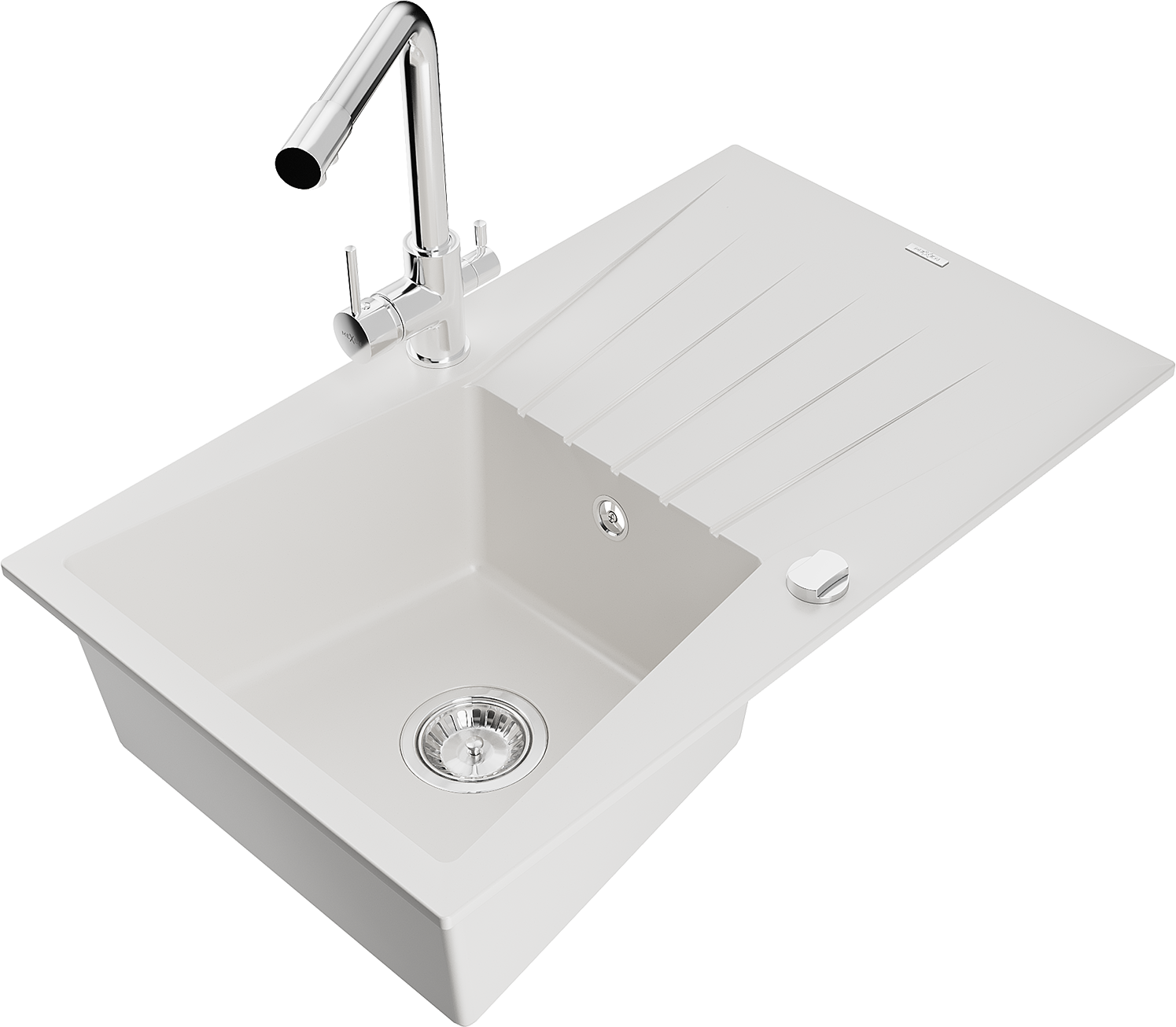 Mexen Cesar zlewozmywak granitowy 1-komorowy z ociekaczem i baterią kuchenną Duero, biały - 6514-20-671600-00