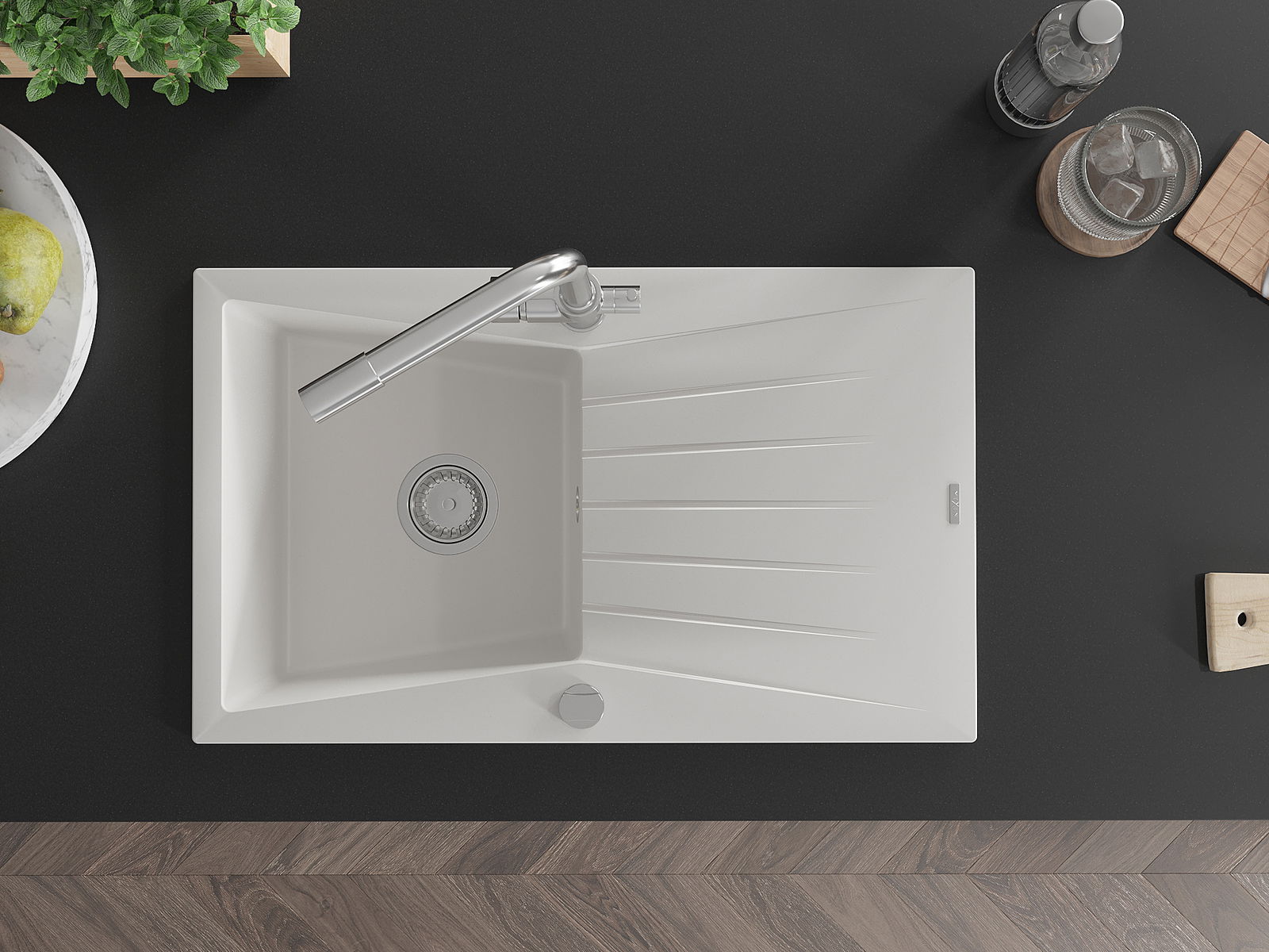 Zlewozmywak został wykonany z wysokiej jakości granitu. Stanowi eleganckie, a przede wszystkim praktyczne uzupełnienie każdej kuchni, niezależnie od jej stylu. Wysoka jakość oraz trwałość granitu zapewniają wieloletnie użytkowanie.