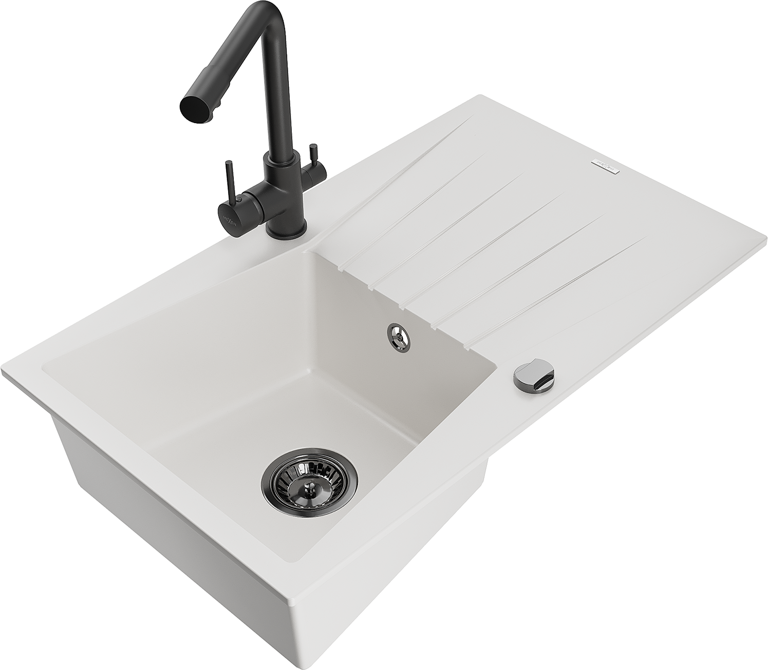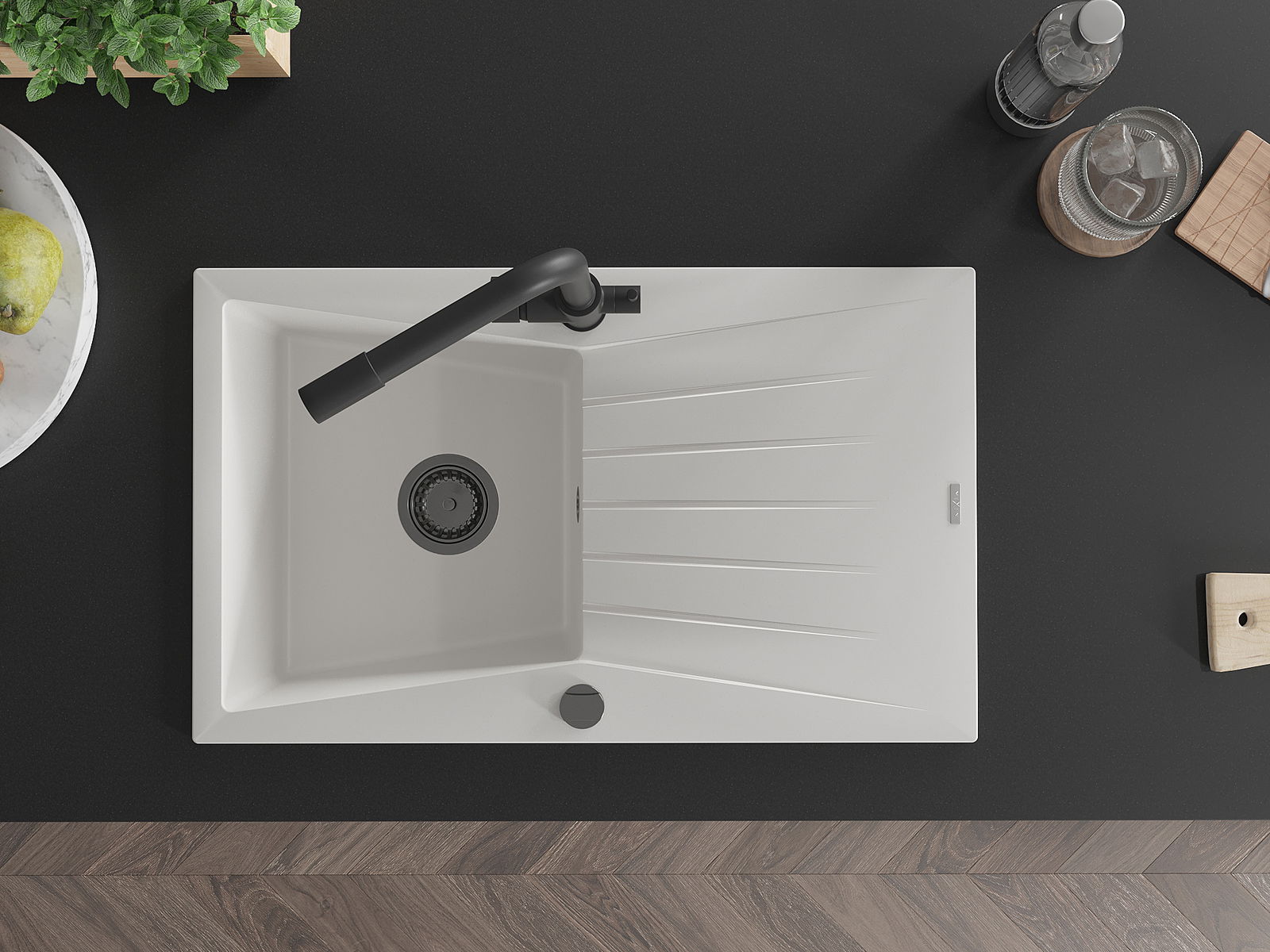 Mexen Cesar zlewozmywak granitowy 1-komorowy z ociekaczem i baterią kuchenną Duero, biały - 6514-20-671600-70