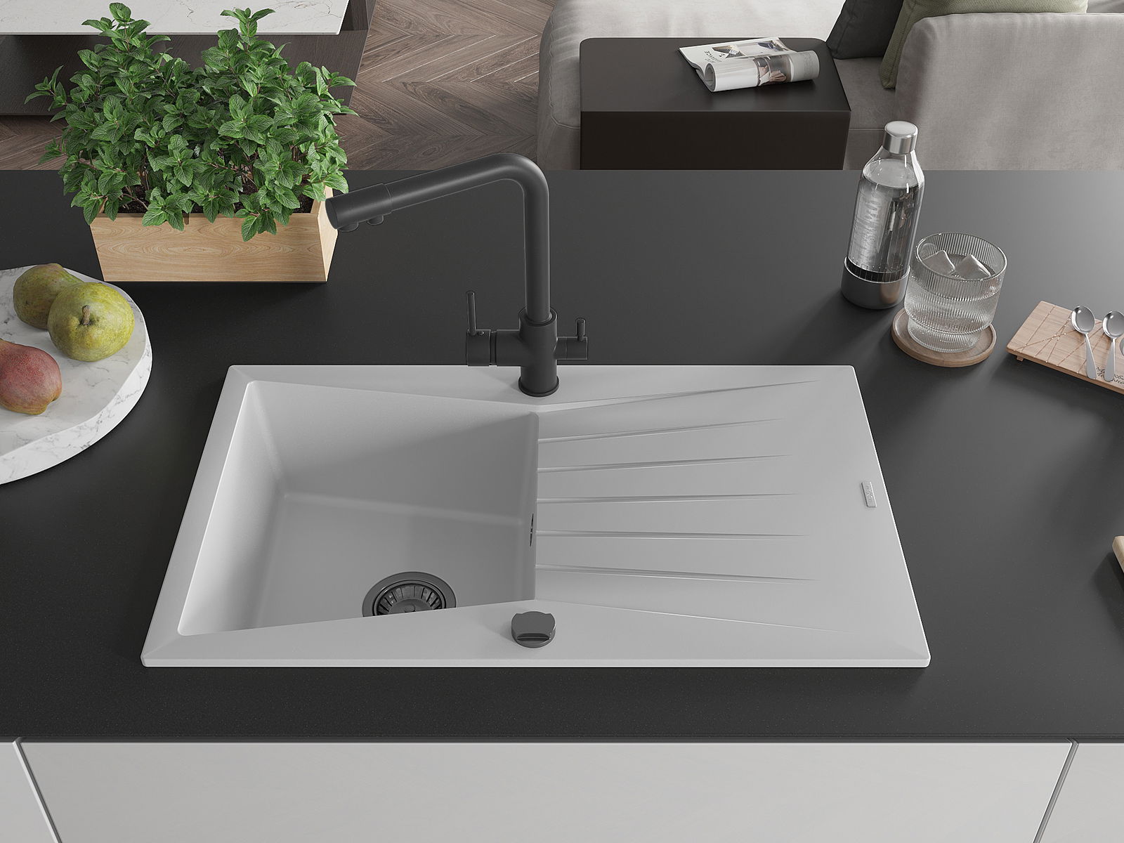 Zlewozmywak został wykonany z wysokiej jakości granitu. Stanowi eleganckie, a przede wszystkim praktyczne uzupełnienie każdej kuchni, niezależnie od jej stylu. Wysoka jakość oraz trwałość granitu zapewniają wieloletnie użytkowanie.