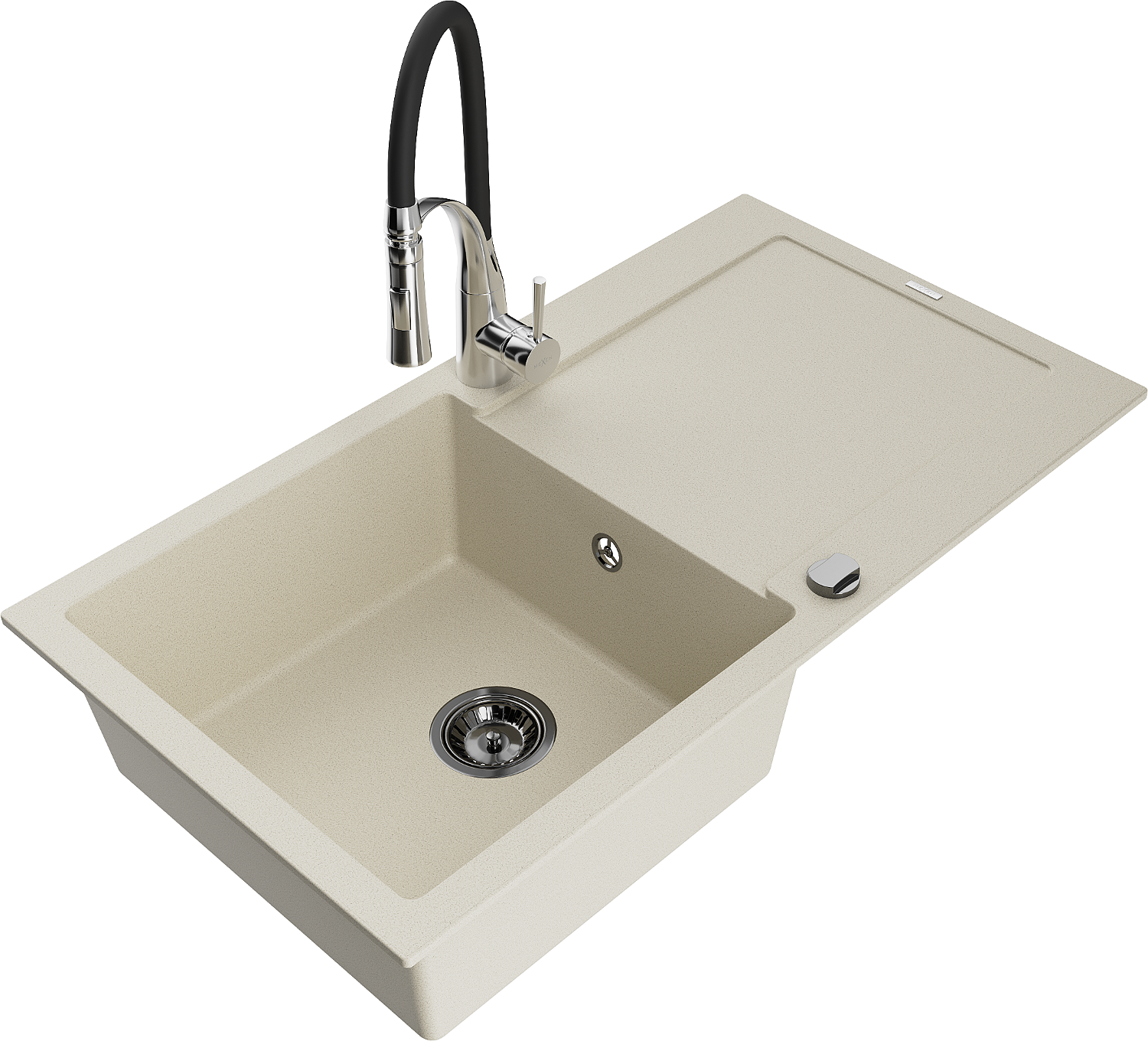 Mexen Leo zlewozmywak granitowy 1-komorowy z ociekaczem i baterią kuchenną Aster, beżowy - 6501-69-73450-07-B