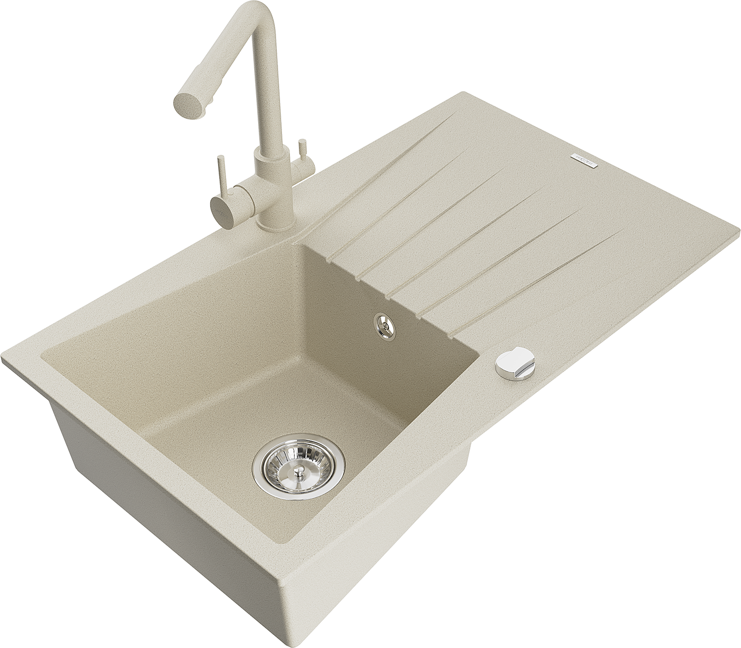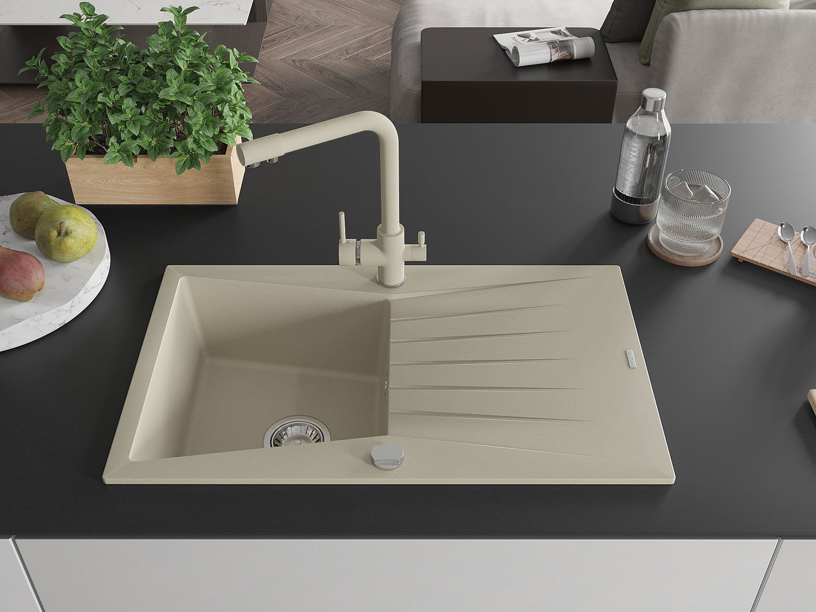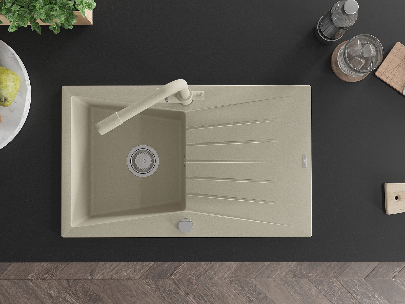 Mexen Cesar zlewozmywak granitowy 1-komorowy z ociekaczem i baterią kuchenną Duero, beżowy - 6514-69-671600-69