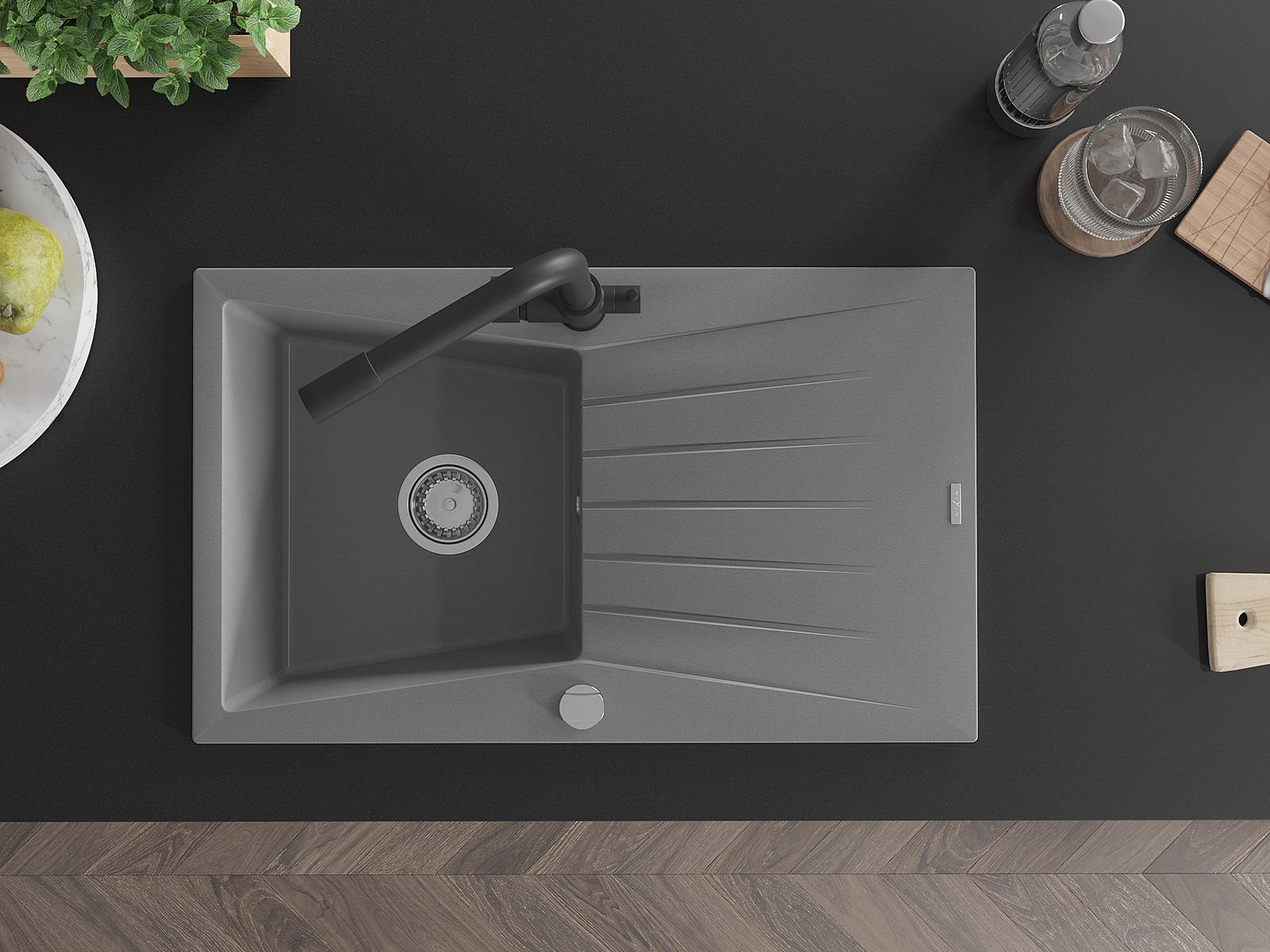 Dzięki zastosowaniu uniwersalnego systemu mocowania, zlew jest odwracalny, a ociekacz może zostać zamontowany na blacie po lewej lub prawej stronie. W ten sposób możesz z łatwością dopasować stronę do swoich potrzeb i warunków.