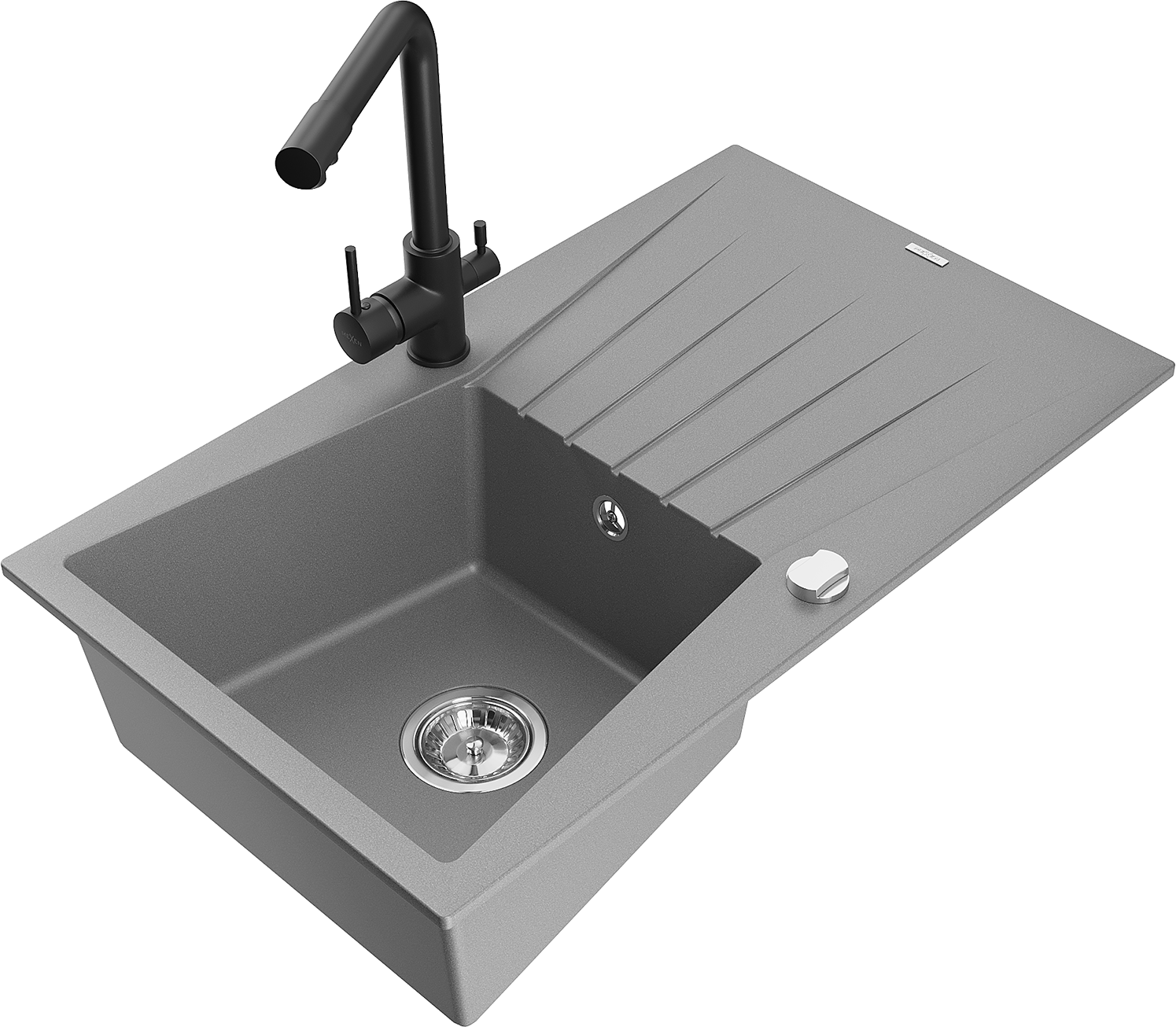 Mexen Cesar zlewozmywak granitowy 1-komorowy z ociekaczem i baterią kuchenną Duero, szary - 6514-71-671600-70