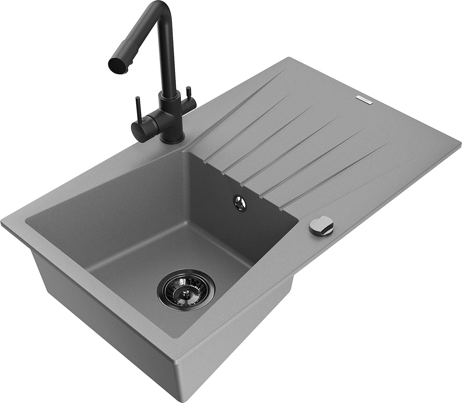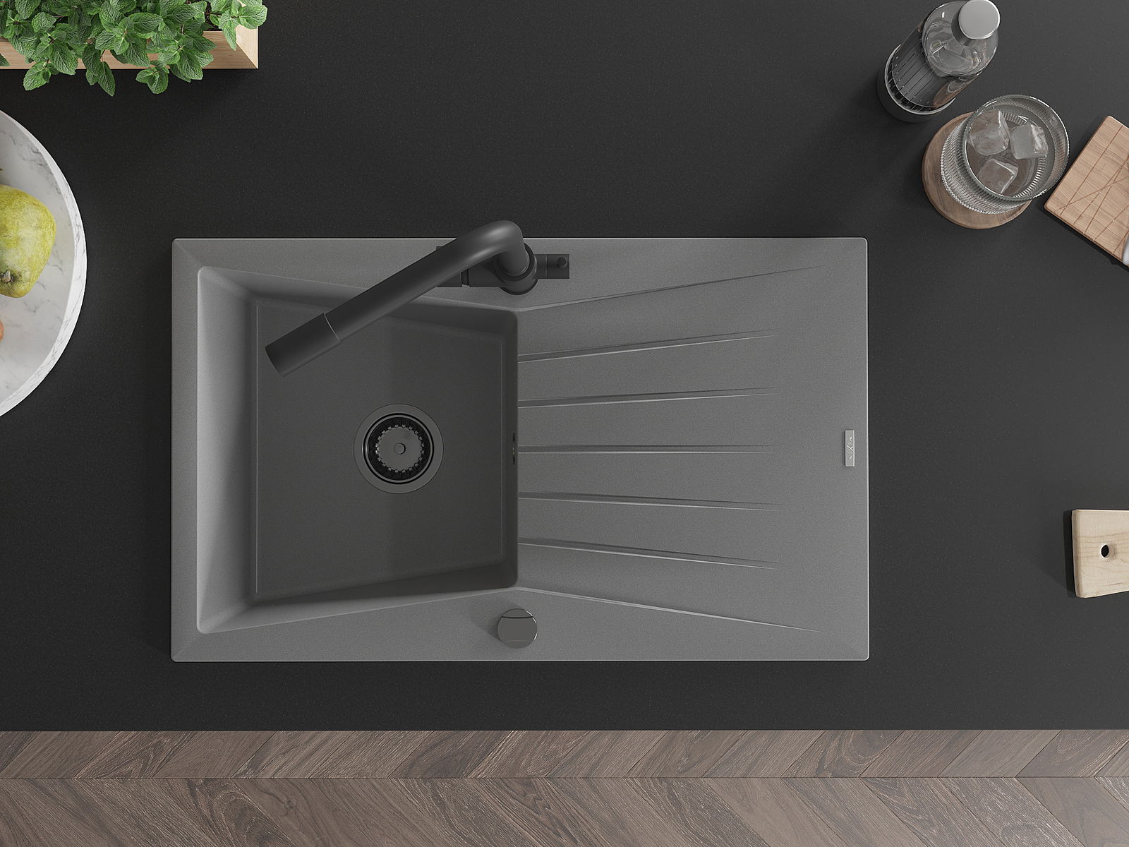 Mexen Cesar zlewozmywak granitowy 1-komorowy z ociekaczem i baterią kuchenną Duero, szary - 6514-71-671600-70-B