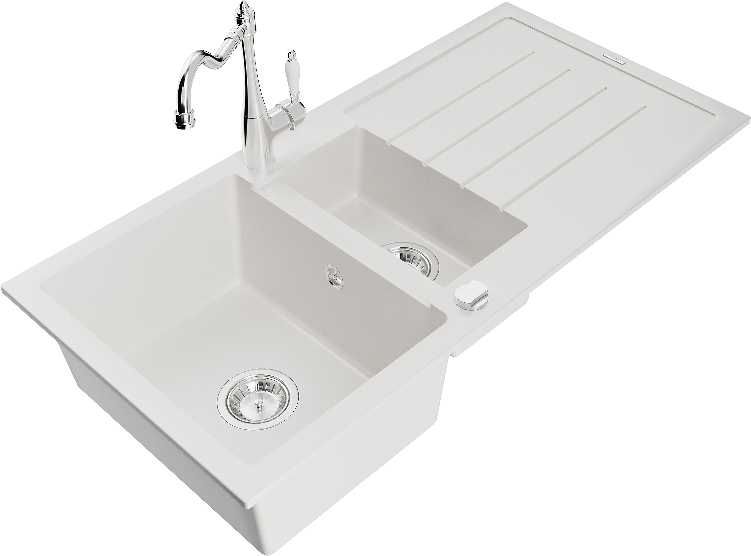 Mexen Andres zlewozmywak granitowy 1,5-komorowy z ociekaczem i baterią kuchenną Carla, biały - 6515-20-670700-00