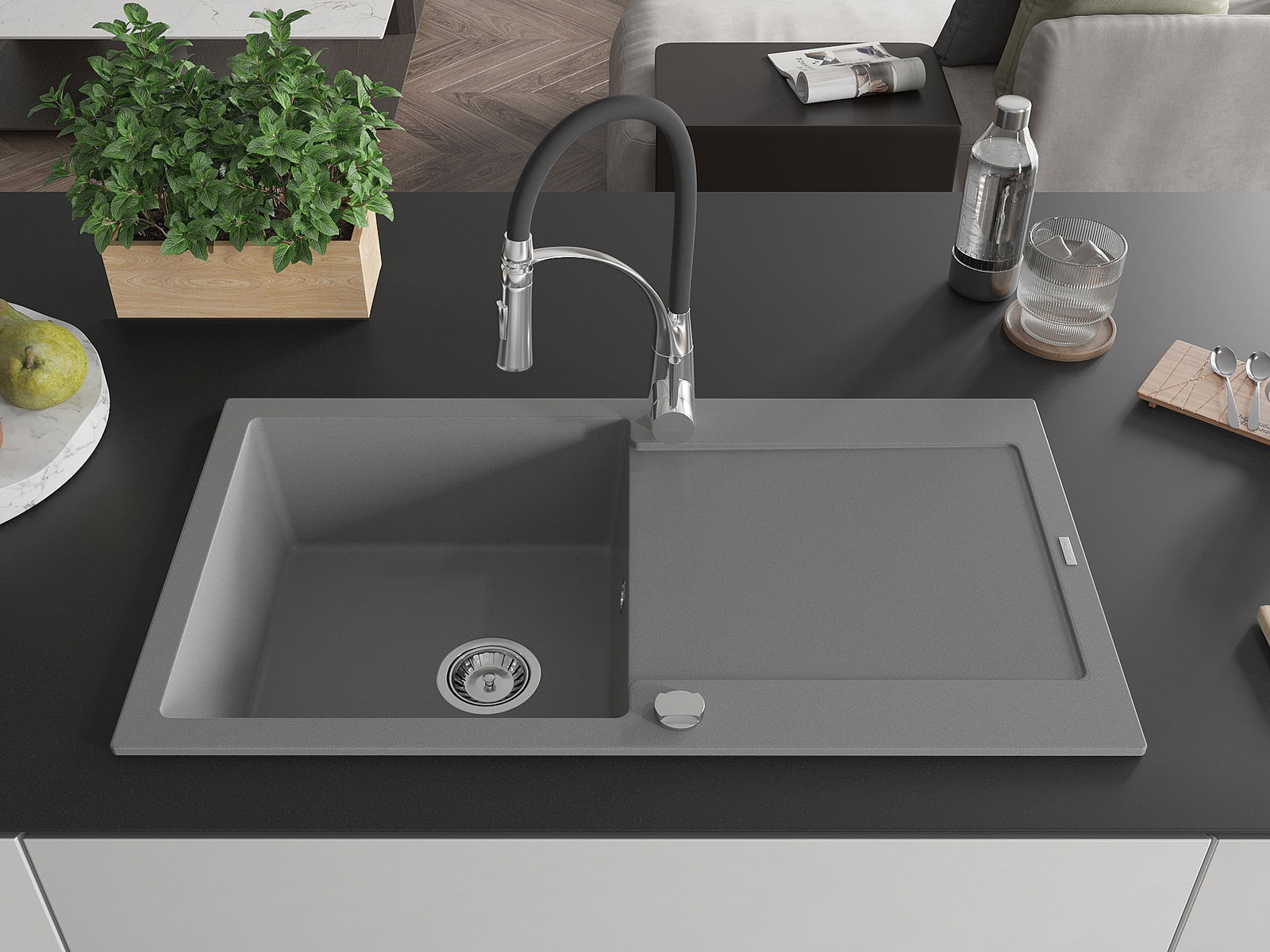 Zlewozmywak został wykonany z wysokiej jakości granitu. Stanowi eleganckie, a przede wszystkim praktyczne uzupełnienie każdej kuchni, niezależnie od jej stylu. Wysoka jakość oraz trwałość granitu zapewniają wieloletnie użytkowanie.