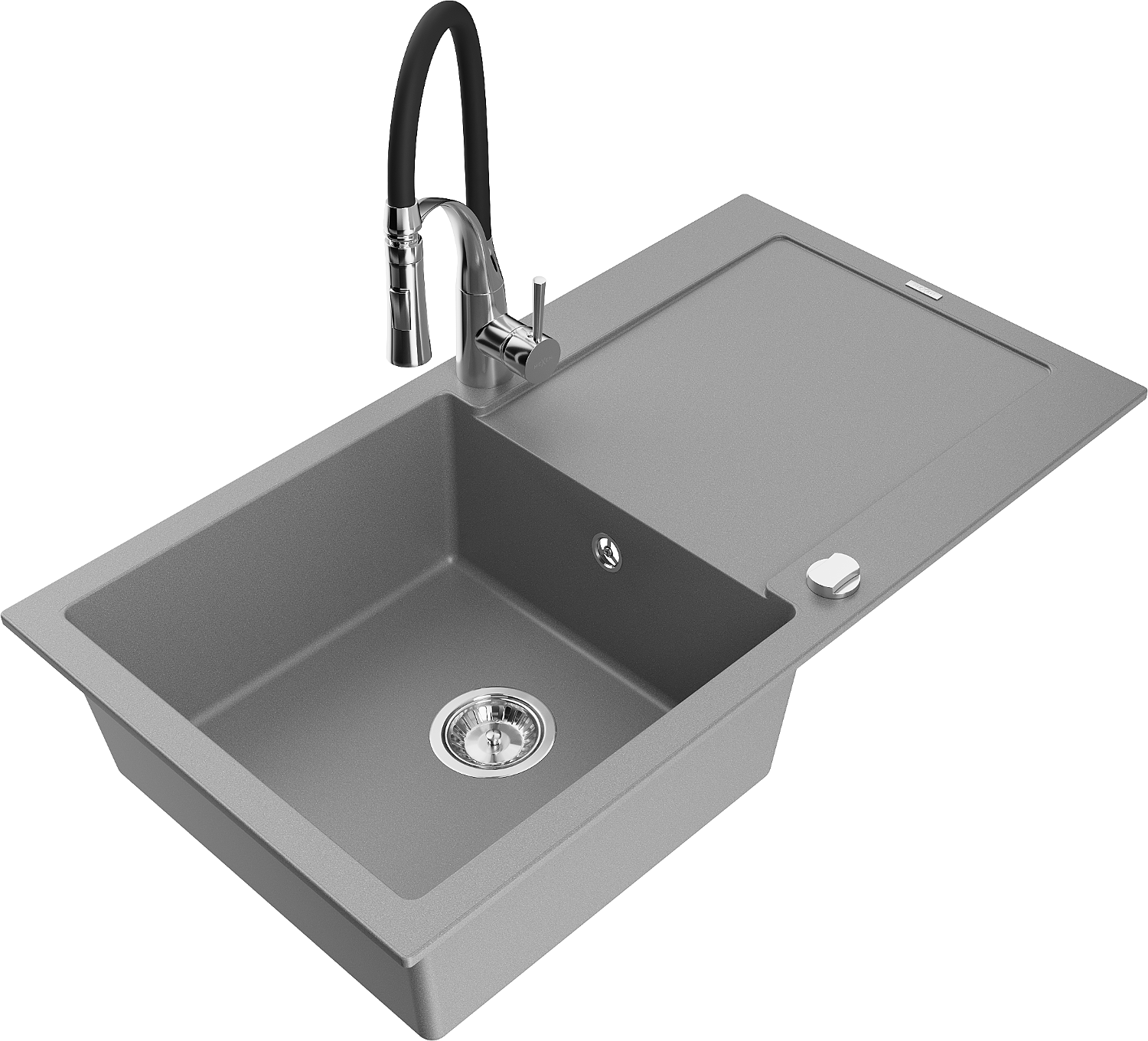 Mexen Leo zlewozmywak granitowy 1-komorowy z ociekaczem i baterią kuchenną Aster, szary - 6501-71-73450-07