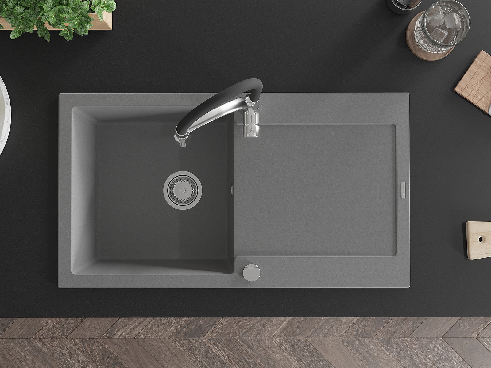 Dzięki zastosowaniu uniwersalnego systemu mocowania, zlew jest odwracalny, a ociekacz może zostać zamontowany na blacie po lewej lub prawej stronie. W ten sposób możesz z łatwością dopasować stronę do swoich potrzeb i warunków.