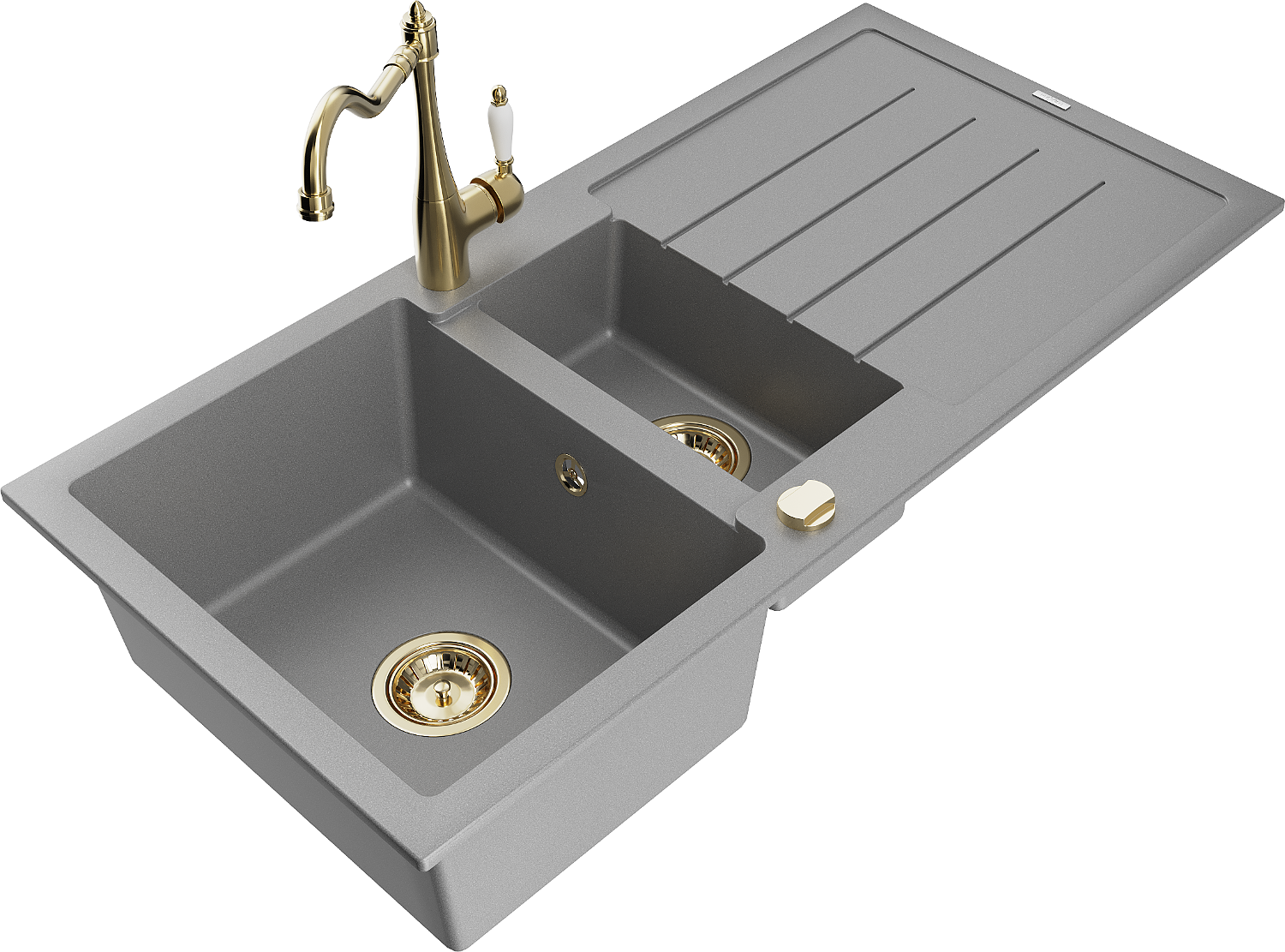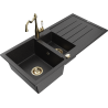 Mexen Andres zlewozmywak granitowy 1,5-komorowy z ociekaczem i baterią kuchenną Carla, szary - 6515-71-670700-50