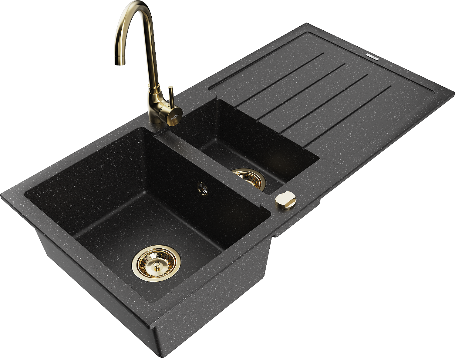 Mexen Andres zlewozmywak granitowy 1,5-komorowy z ociekaczem i baterią kuchenną Telma, czarny/srebrny - 6515-73-670200-50