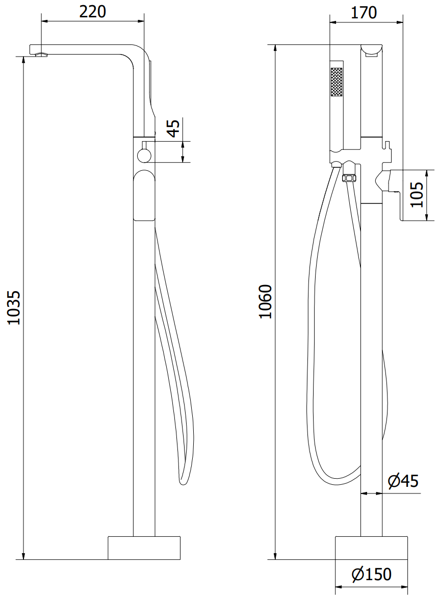 Mexen Roxy wolnostojąca bateria wannowa, czarna - 75533-70