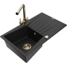 Mexen Cesar zlewozmywak granitowy 1-komorowy z ociekaczem i baterią kuchenną Duero, czarny nakrapiany - 6514-76-671600-50