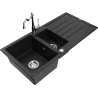 Mexen Andres zlewozmywak granitowy 1,5-komorowy z ociekaczem i baterią kuchenną Carla, czarny nakrapiany - 6515-76-670700-00