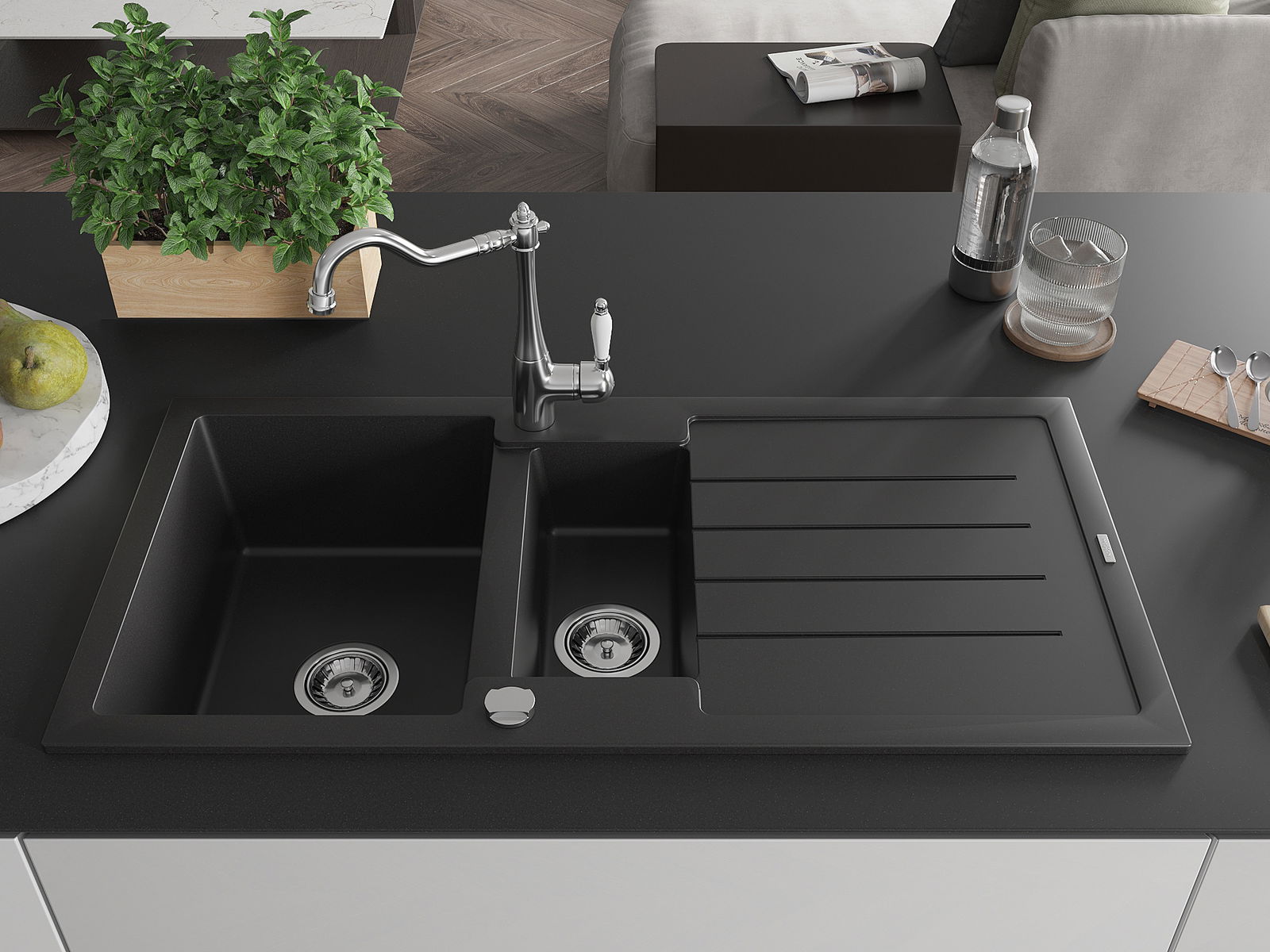 Dobrze zabezpieczona powierzchnia zlewozmywaka hamuje wnikanie zabrudzeń do jego wewnętrznych struktur. Dzięki temu utrzymanie zlewu w czystości jest jeszcze łatwiejsze, a jego powierzchnia zachowuje swoją estetykę na dłużej.