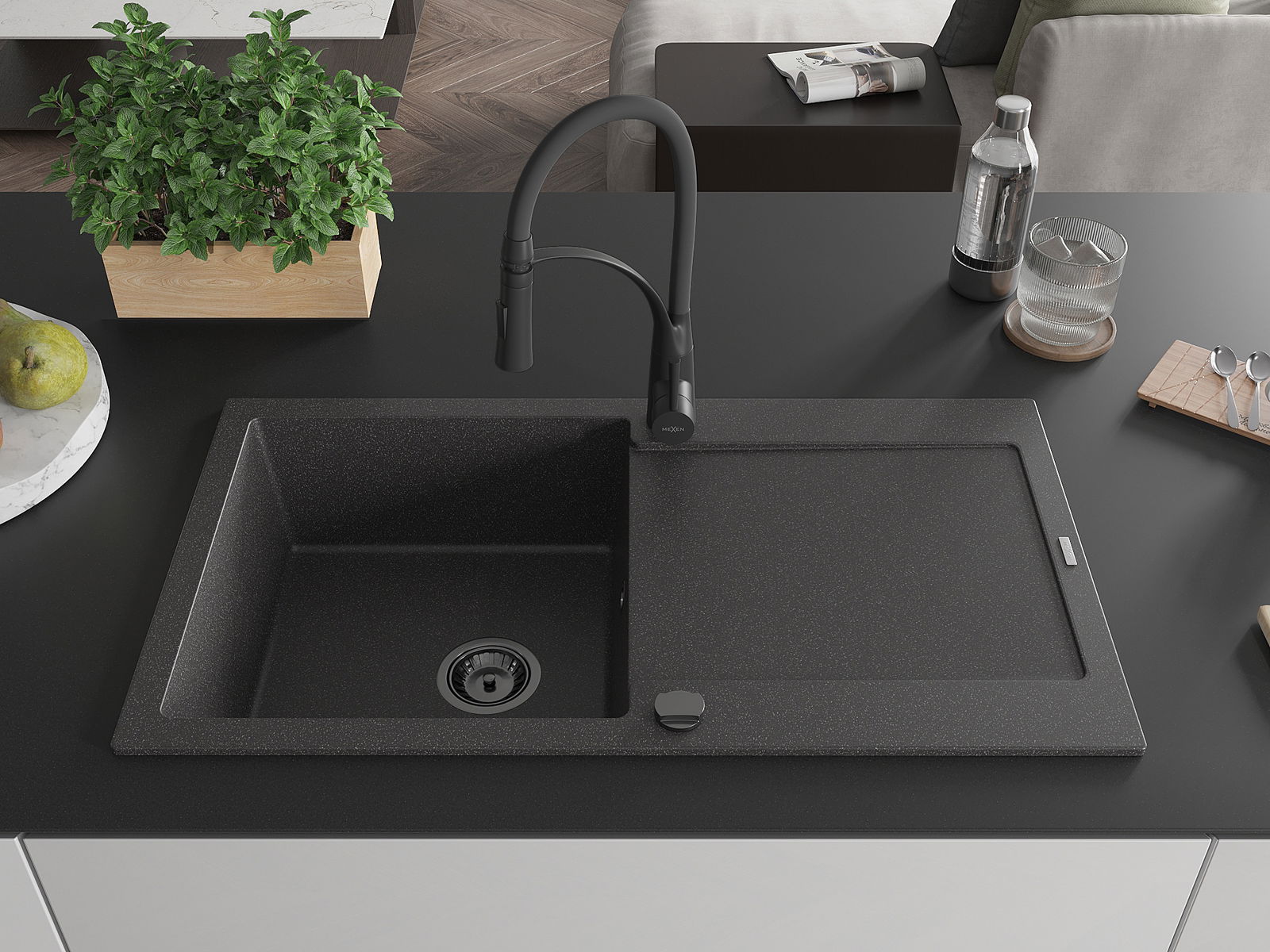 Zlewozmywak został wykonany z wysokiej jakości granitu. Stanowi eleganckie, a przede wszystkim praktyczne uzupełnienie każdej kuchni, niezależnie od jej stylu. Wysoka jakość oraz trwałość granitu zapewniają wieloletnie użytkowanie.