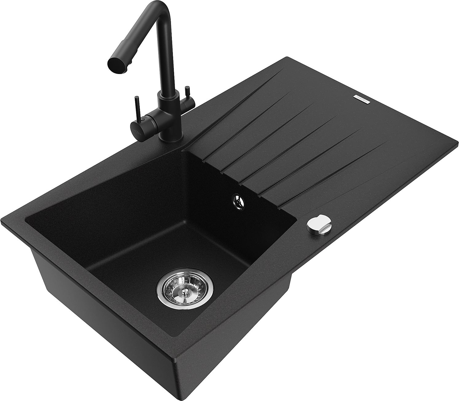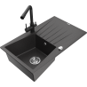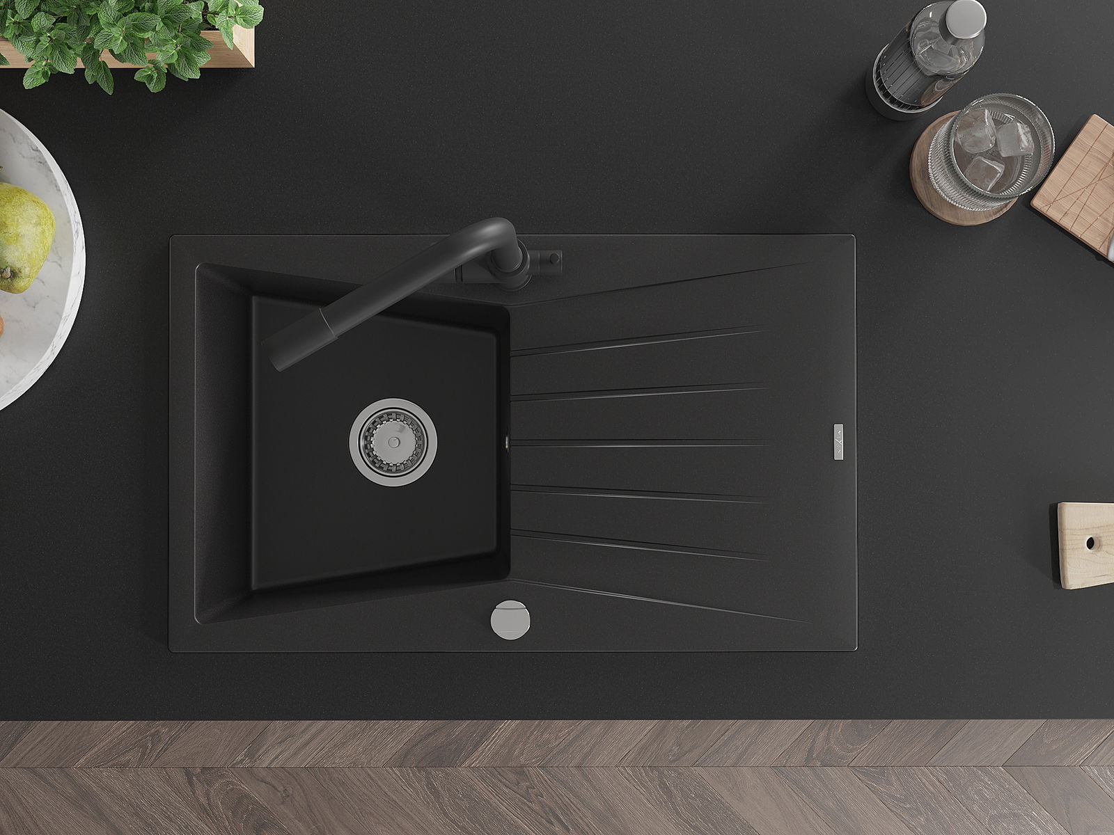 Mexen Cesar zlewozmywak granitowy 1-komorowy z ociekaczem i baterią kuchenną Duero, czarny - 6514-77-671600-70