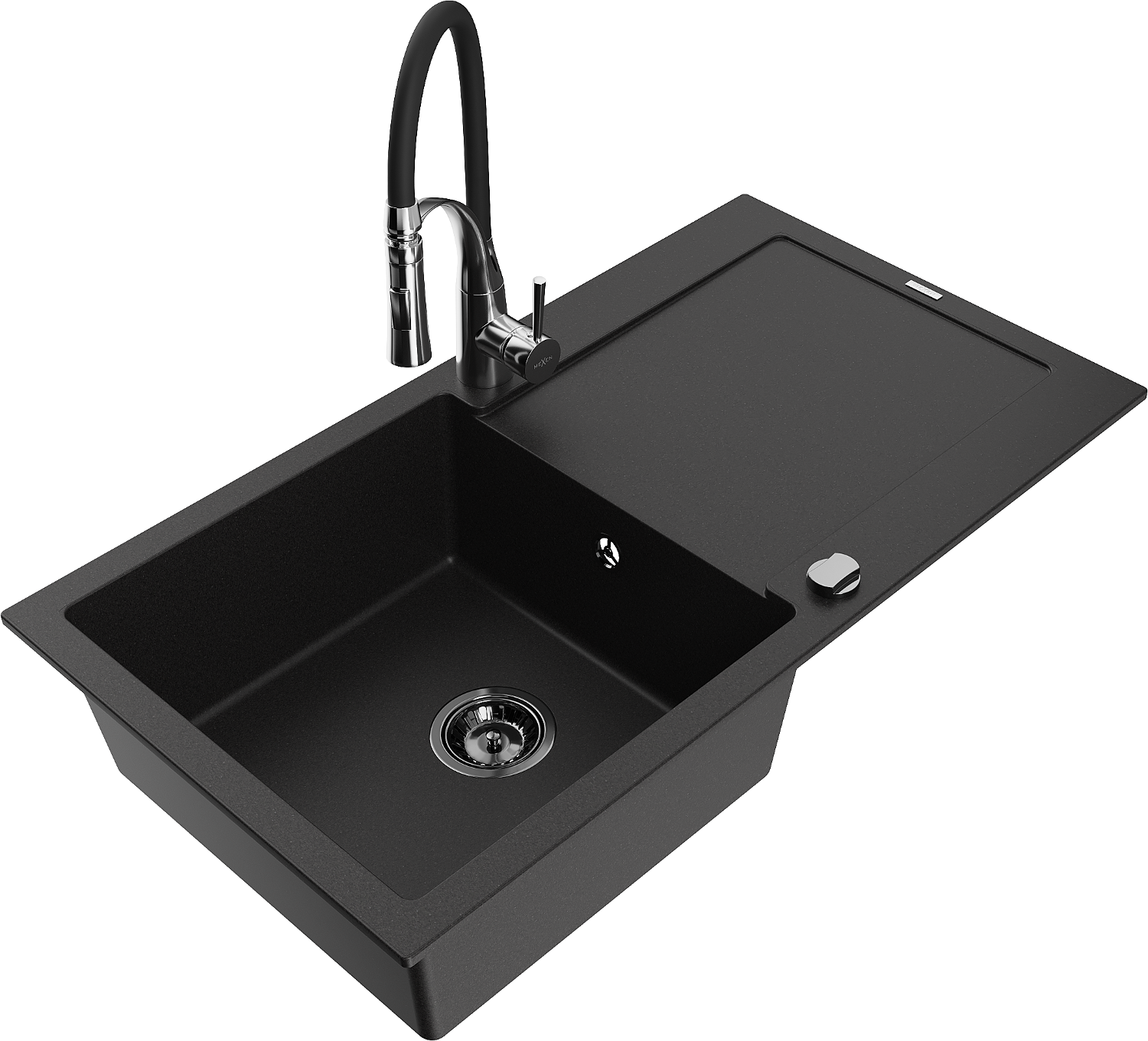 Mexen Leo zlewozmywak granitowy 1-komorowy z ociekaczem i baterią kuchenną Aster, czarny - 6501-77-73450-07-B
