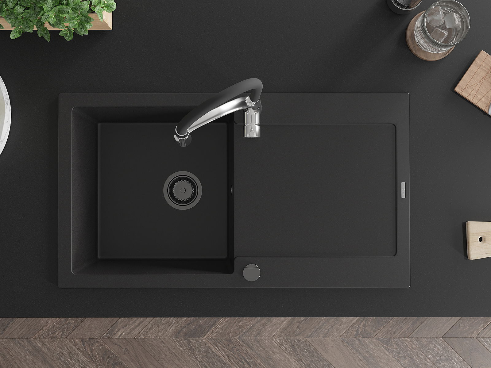 Dzięki zastosowaniu uniwersalnego systemu mocowania, zlew jest odwracalny, a ociekacz może zostać zamontowany na blacie po lewej lub prawej stronie. W ten sposób możesz z łatwością dopasować stronę do swoich potrzeb i warunków.