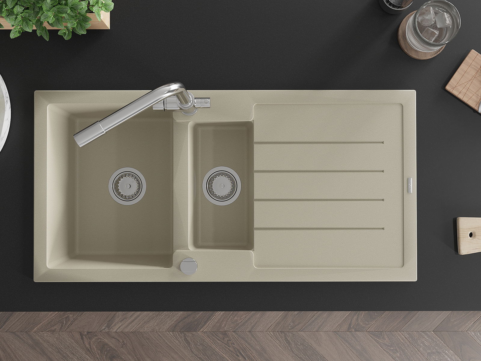 Powierzchnia zlewozmywaka jest bardzo dobrze utwardzona, wyróżnia się wyjątkową odpornością na uszkodzenia mechaniczne i zarysowania. Trwały materiał wykonania pozwala cieszyć się dobrym wyglądem zlewozmywaka przez wiele lat użytkowania.