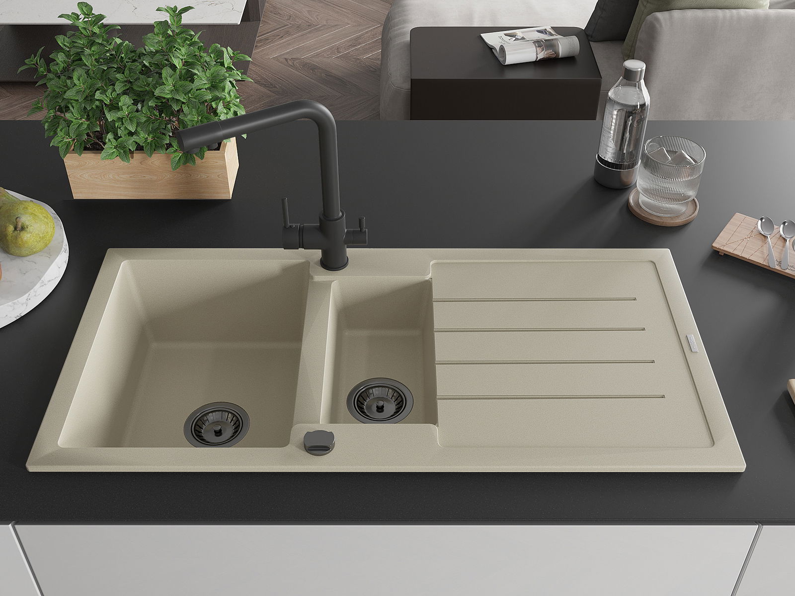 Zlewozmywak został wykonany z wysokiej jakości granitu. Stanowi eleganckie, a przede wszystkim praktyczne uzupełnienie każdej kuchni, niezależnie od jej stylu. Wysoka jakość oraz trwałość granitu zapewniają wieloletnie użytkowanie.