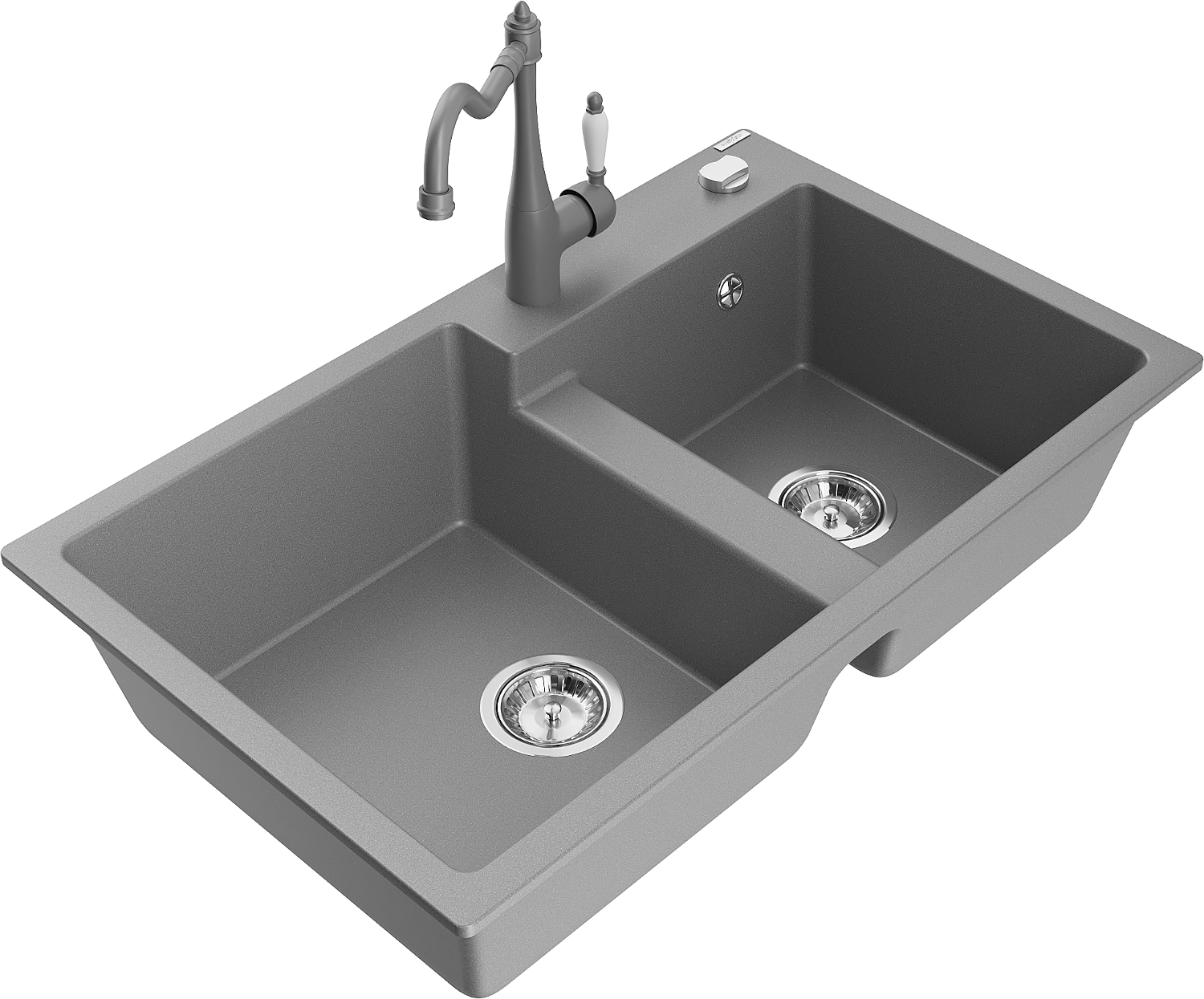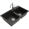 Mexen Tomas zlewozmywak granitowy 2-komorowy z baterią kuchenną Carla, szary - 6516-71-670700-71