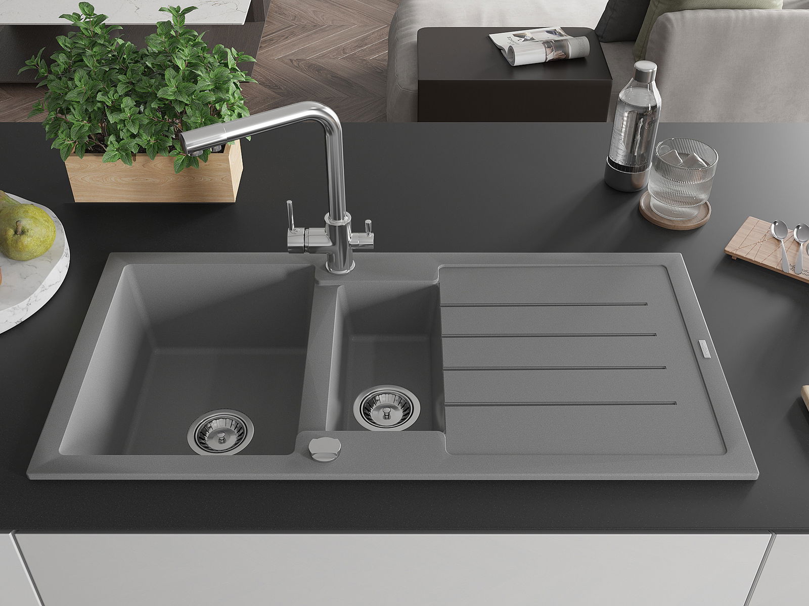 Zlewozmywak został wykonany z wysokiej jakości granitu. Stanowi eleganckie, a przede wszystkim praktyczne uzupełnienie każdej kuchni, niezależnie od jej stylu. Wysoka jakość oraz trwałość granitu zapewniają wieloletnie użytkowanie.