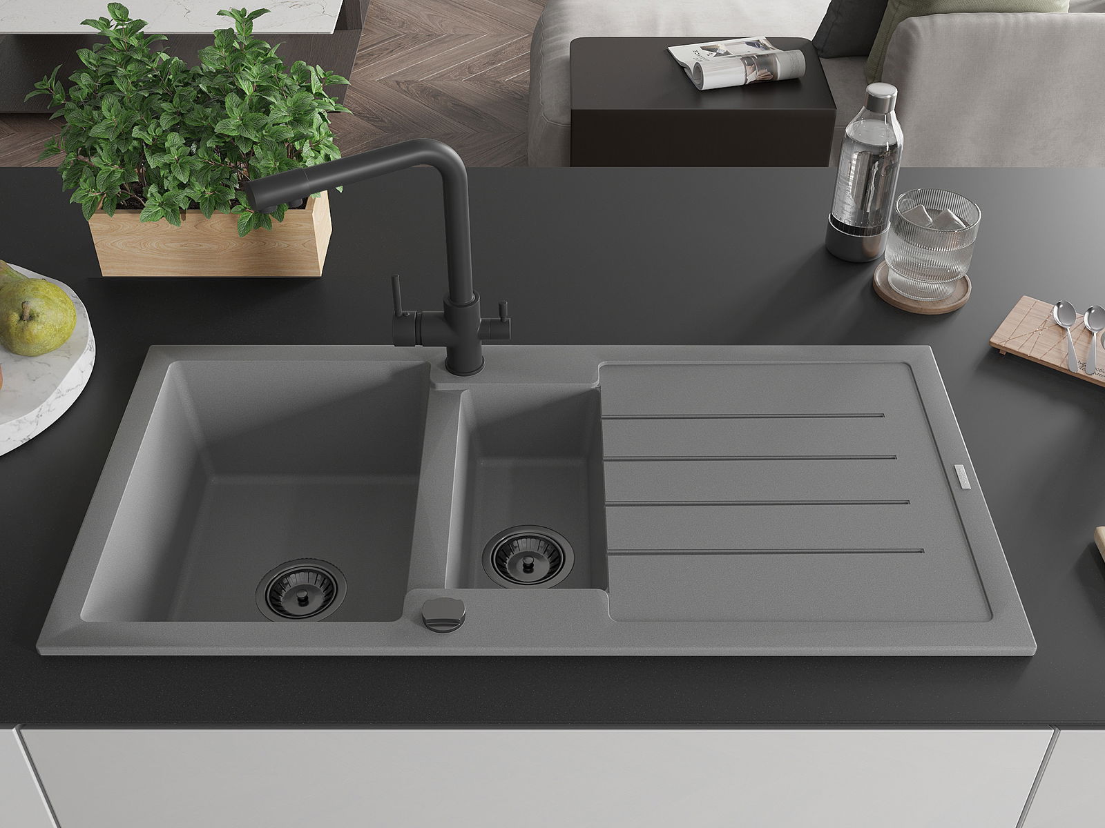 Zlewozmywak został wykonany z wysokiej jakości granitu. Stanowi eleganckie, a przede wszystkim praktyczne uzupełnienie każdej kuchni, niezależnie od jej stylu. Wysoka jakość oraz trwałość granitu zapewniają wieloletnie użytkowanie.