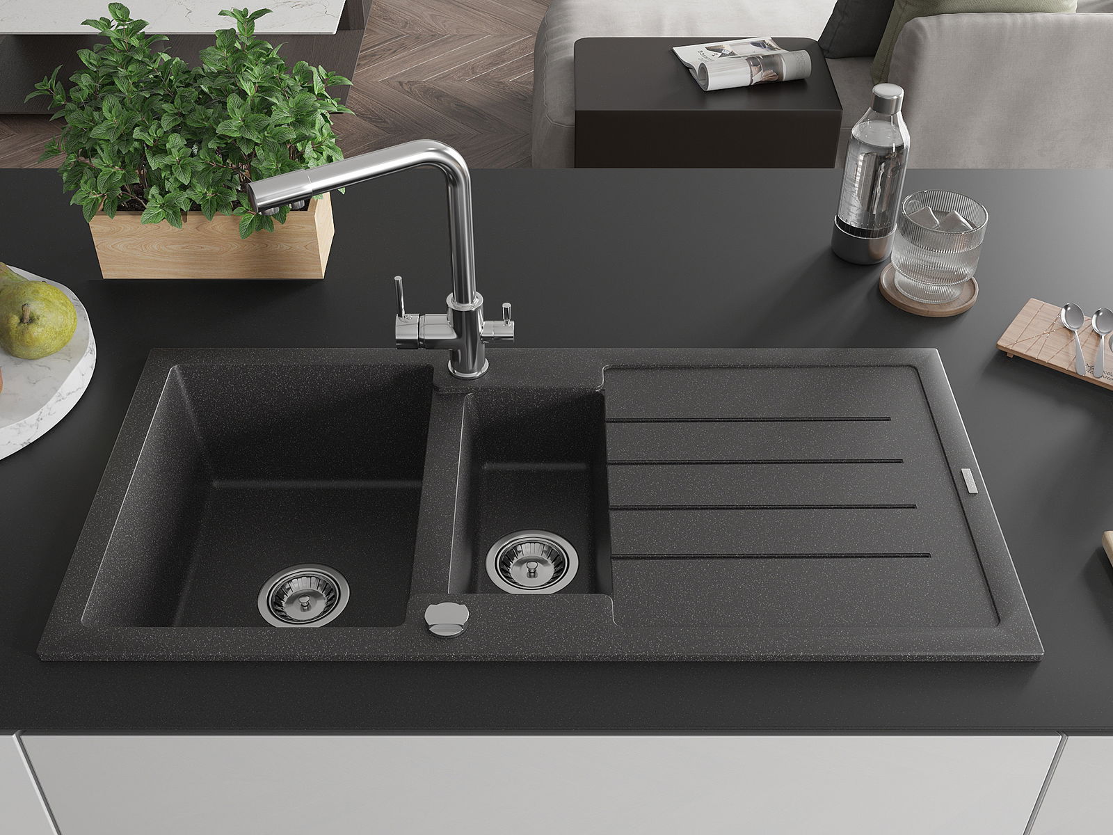 Zlewozmywak został wykonany z wysokiej jakości granitu. Stanowi eleganckie, a przede wszystkim praktyczne uzupełnienie każdej kuchni, niezależnie od jej stylu. Wysoka jakość oraz trwałość granitu zapewniają wieloletnie użytkowanie.
